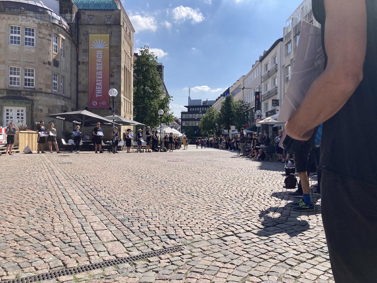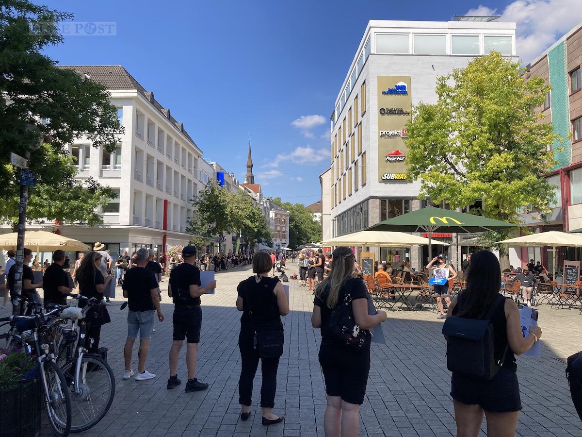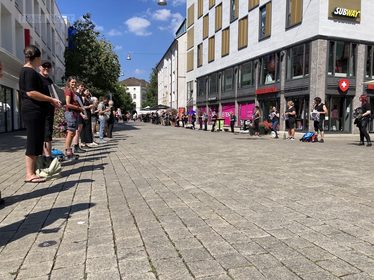 Über 230 Menschen aus ganz Deutschland haben sich am Donnerstagmittag (25. August) in der Osnabrücker Innenstadt versammelt. Mit einer Menschenkette vom Theatervorplatz bis zum Nikolaiort wenden sie sich gegen die Tierquälerei in Bad Iburg.