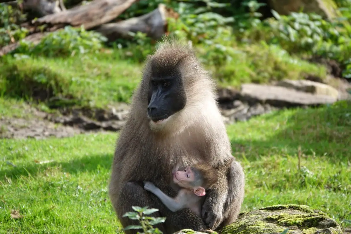 In der Nacht zum 18. Oktober brachte Drillweibchen Katara im Zoo Osnabrück erneut ein Jungtier zur Welt. Der Drill gehört zu den am stärksten bedrohten Primatenarten Afrikas, umso größer ist die Freude über den Nachwuchs. Katara ist bereits erfahrene Mutter und kümmert sich liebevoll um ihr Junges.