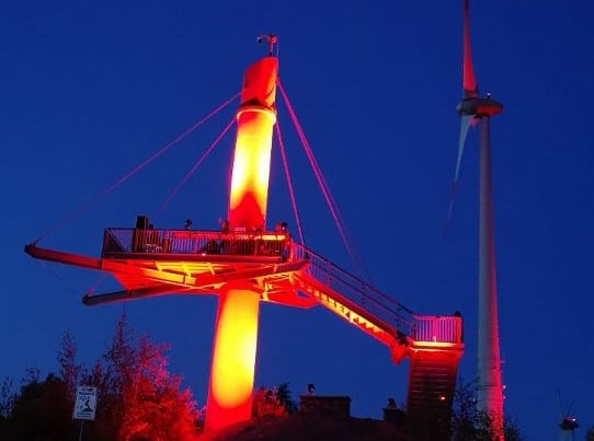 Als sich das Coronavirus im März in Europa ausbreitete, wurden alle Massenveranstaltungen wie Konzerte, Messen und Festivals abgesagt, Deutschlands sechstgrößter Wirtschaftszweig steht seither still. „Die Veranstaltungswirtschaft war die erste Branche, die vom Lockdown betroffen war, und wird aller Voraussicht nach die letzte sein, die den Betrieb wieder aufnehmen darf. Sollte auch der Karneval im nächsten Jahr ausfallen, wäre das der Todesstoß für viele Unternehmen,“ sagt Patrick Meyer im Gespräch mit unserer Redaktion. Meyer nimmt zusammen mit anderen Unternehmern und Dienstleistern an der Aktion „Night of light“ teil, und hat mit diesen etwa 50 Scheinwerfer am Piesberg installiert, die die Windräder und die Aussichtsplattform in rotes Licht tauchen. Auf der Plattform wurde zusätzlich ein DJ-Pult aufgestellt, um ein nächtliches Konzert auf dem Videoportal Twitch zu streamen.