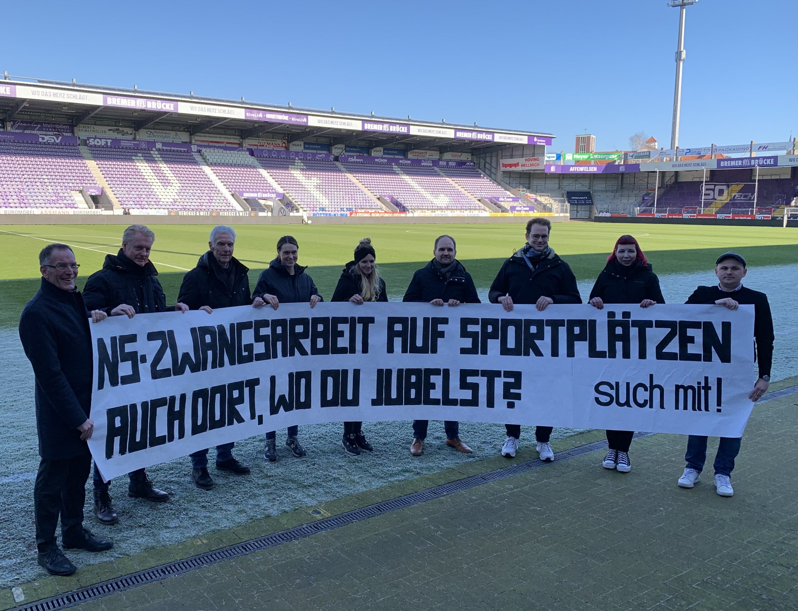 Dort, wo Sidoruk Totschlag und Misshandlung erlebte, bejubelte nur kurz zuvor noch der VfL Osnabrück große sportliche Erfolge. Mit Kriegsbeginn wich der Fußballplatz dann allerdings dem Arbeitslager. Aus einem Ort des Jubels wurde ein Ort des Unrechts. Heute, rund 80 Jahre später, haben die Gedenkstätten Gestapokeller und Augustaschacht gemeinsam mit dem VfL-nahen Bündnis „Tradition lebt von Erinnerung“ ein bundesweites Projekt auf den Weg gebracht, das die Erinnerung an eben jenes Unrecht aufrecht erhalten soll. Mithilfe einer interaktiven Online-Karte sollen künftig Infos zu vergessenen Lagern und davon betroffenen Sportstätten aus der ganzen Bundesrepublik gebündelt werden. Gefördert wird das Projekt im Rahmen der „Bildungsagenda NS-Unrecht” durch die Stiftung Erinnerung, Verantwortung und Zukunft (EVZ) sowie das Bundesministerium der Finanzen (BMF) mit 482.567 Euro.