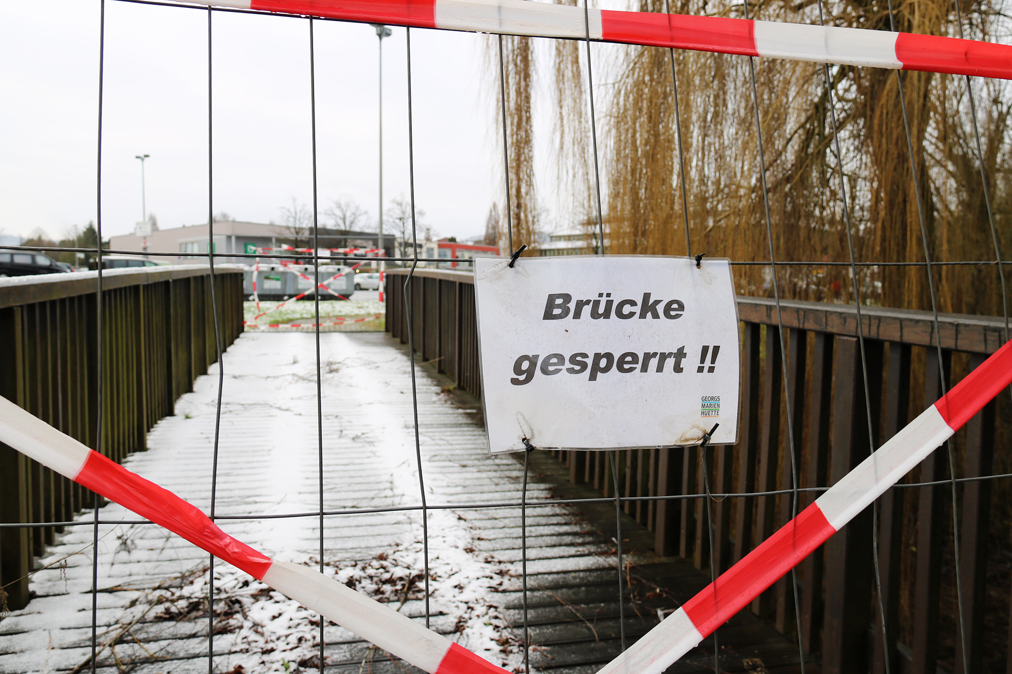 Die Holzbrücke ist vor über 25 Jahren als Verbindung zwischen der Alten Seilerei und dem weiteren Zentrum rund um das Rathaus errichtet worden. Mit dem Bau der heutigen Georg-Elser-Straße hatte sie allerdings ihre bis dato alleinige Funktion als fußläufige Verbindung zwischen den genannten Bereichen verloren.
