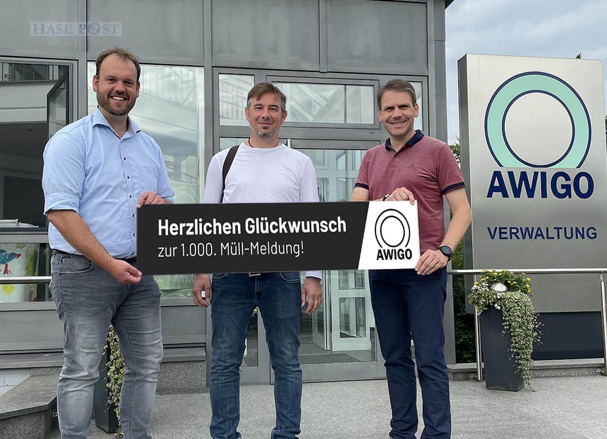 Seit rund anderthalb Jahren lassen sich Fundorte von Müllablagerungen in der Natur über die AWIGO-App und die Website schnell und einfach melden, sodass sie anschließend aufgespürt und fachgerecht entsorgt werden können. Diesen digitalen Service nutzen die Menschen im Landkreis Osnabrück rege. Stephan Löhle aus Georgsmarienhütte gab den tausendsten Hinweis an die AWIGO.