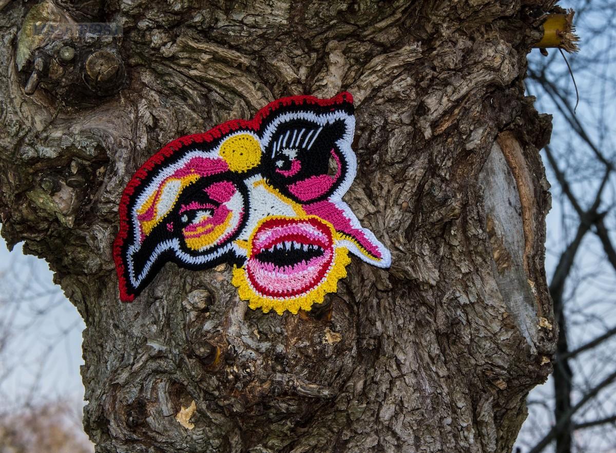 Ein Baum bekommt ein Gesicht – gehäkelt von Ute Krugmann. / Foto: Ute Krugmann
