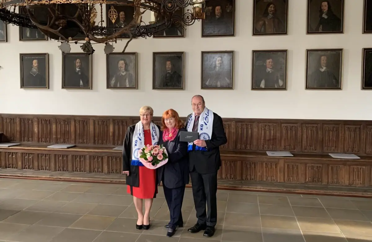 Das neue Stadtprinzenpaar Lena I. (links) und Klaus I. mit Brigitte Neumann im Friedenssaal des Osnabrücker Rathauses. / Foto: Maurice Guss