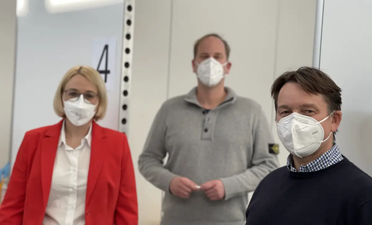Titelbild: Katharina Pötter, Dr. Carsten Brau (m.) und Dr. Kai Michel (r.) bei einer Impfaktion vor der Gesamtschule Schinkel (Archivbild)
