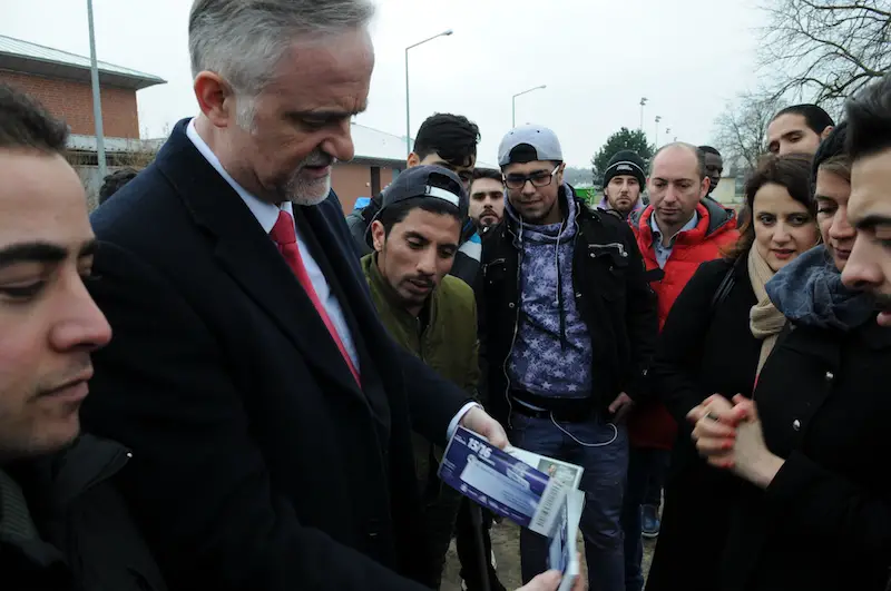 Über 30 Flüchtlinge haben sich vor Ankunft der Feuerwehr und Polizei um die Erste Hilfe gekümmert: Sie haben die verletzten Passagiere aus dem Flugzeug geborgen und versorgt. Oberbürgermeister Wolfgang Griesert besuchte heute die Flüchtlinge, um ihnen zu danken. Er berichtete, dass die Flugzeuginsassen Mitarbeiter eines ihm bekannten Unternehmens seien. Er habe sich am Vormittag über deren Gesundheitszustand informiert. Die auf dem Gelände lebenden Flüchtlinge erzählten dem Oberbürgermeister noch einmal die dramatischen Ereignisse des gestrigen Tages.