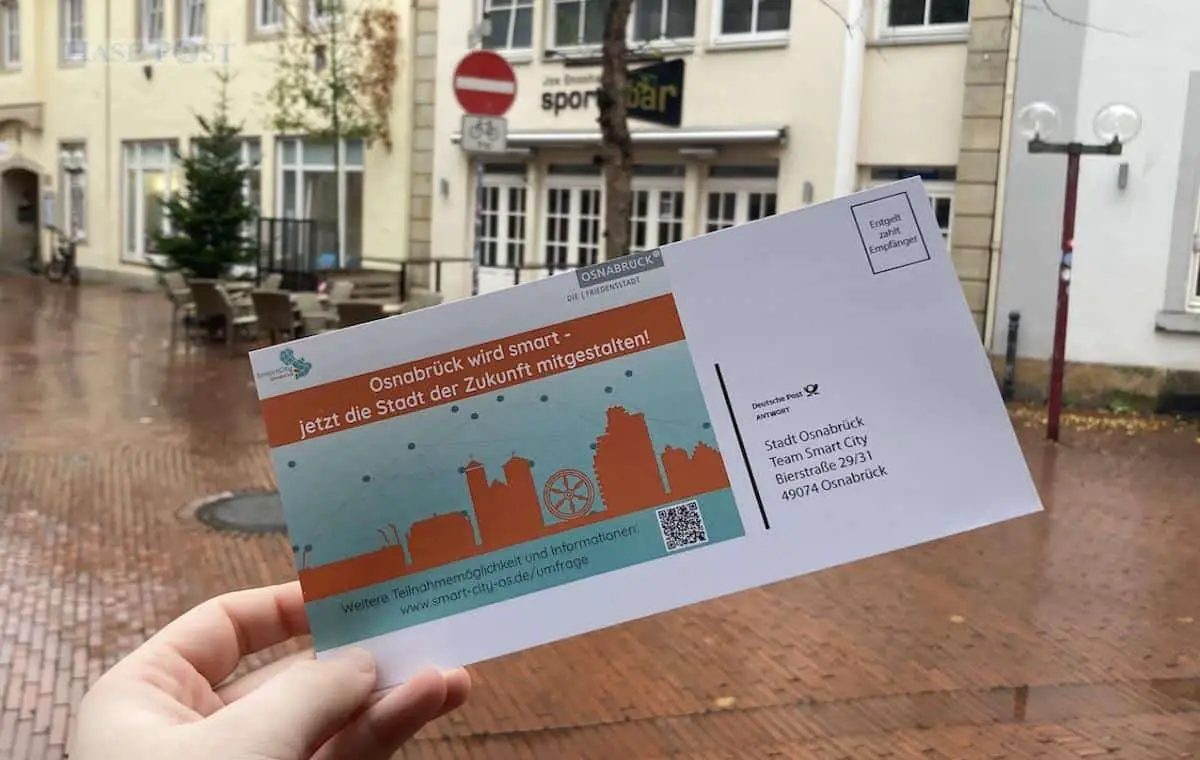 Und jetzt sind Osnabrücker Bürgerinnen und Bürger gefragt: Wer eine Herausforderung entdeckt, die digital gelöst werden kann, kann seine Idee online oder per Post einreichen. Denn: „Eine Smart City kann nur gemeinsam mit den Bürgerinnen und Bürgern entstehen“, sagt Magdalena Knappik, Leitung Stadt- und Regionalentwicklung. Die Ideen könnten sich dabei über Bereiche wie Mobilitätswende, Klimawandel oder ganz simple Dinge etwa eine Sensorik für volle Glasabfallbehälter erstrecken. Wichtig sei für das Projektteam jetzt erst einmal, Ideen zu generieren. Dazu werden in den kommenden Tagen 2.000 Postkarten zufällige Osnabrücker Haushalte erreichen. Wer keine Karte erhält, kann allerdings trotzdem Ideen einbringen. Entweder digital oder wer dennoch per Post seine Idee einreichen möchte, kann eine Postkarte bei Annika Eußner per Mail oder telefonisch unter 0541 3232098 bestellen. Die Einsendungen sind anonym, können aber auch mit Namen und Telefonnummer versehen werden, wenn man an der Entwicklung seiner Idee weiter teilhaben möchten.
