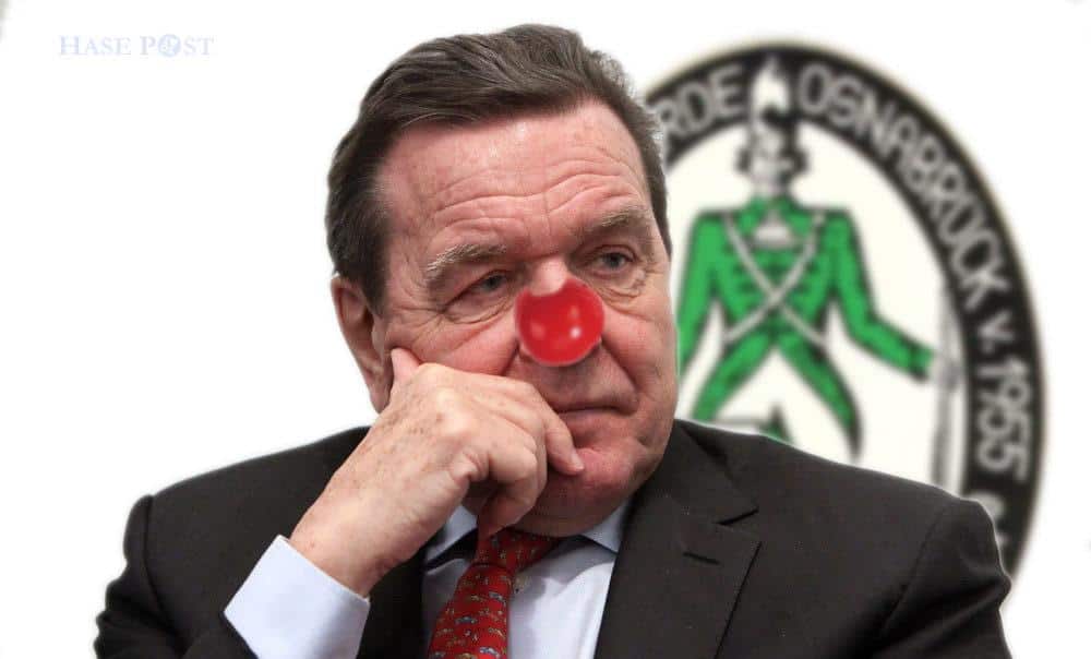 Beim Humor hört der Spaß bekanntlich auf. Und selbst mit Humor können die Narren der Karnevalsgesellschaft Grün Weiße Garde aus der Friedensstadt Osnabrück nicht mehr ertragen, dass der ehemalige SPD-Vorsitzende, Ex-Kanzler und Putin-Freund Gerhard Schröder auch weiterhin zum völkerrechtswidrigen Einmarsch in die Ukraine schweigt.