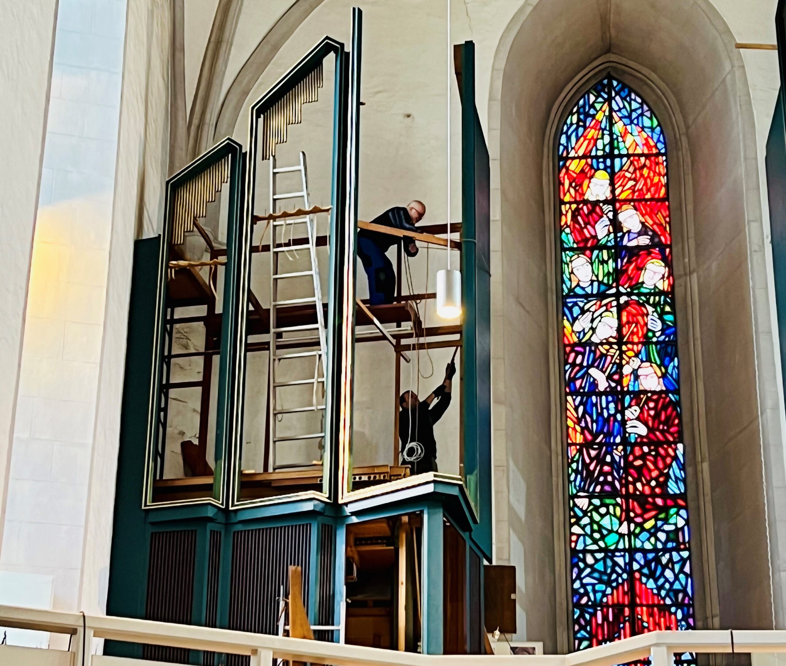 „Das ist eine Menge Arbeit, die das litauische Orgel-Team um Rimvydas Mitkus und die Ehrenamtlichen um unseren Orgelkoordinator Jan-David Dreyer leisten“, berichtet Andrea Kruckemeyer, Pastorin der Evangelisch-lutherischen Kirchengemeinde St. Katharinen. Im Juni 2021 hatte der Kirchenvorstand der Osnabrücker Innenstadtgemeinde den Orgelbaumeister Metzler aus der Schweiz mit der Planung einer Orgel beauftragt, der Friedensorgel.