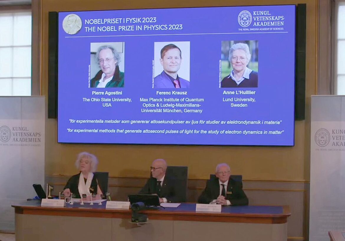 Der diesjährige Nobelpreis für Physik geht an den US-Teilchenforscher Pierre Agostini, Ferenc Krausz von der Ludwig-Maximilians-Universität München und die französische Physikerin Anne L`Huillier. Sie wurden für ihre Forschung zu experimentellen Methoden zur Erzeugung von Attosekunden-Lichtimpulsen für die Untersuchung der Elektronendynamik in Materie ausgezeichnet.