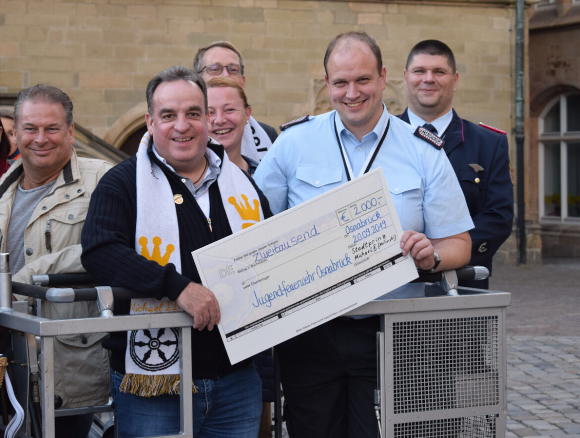 Karneval ist nicht nur Feiern und Spaß haben. Die Osnabrücker Jecken rund um ihren Stadtprinzen Michael II wollen auch Gutes tun. Sie verkauften seit dem Beginn der Karnevalszeit am 11. November 2018 fleißig Pins. Die gesammelten 2.000 Euro wurden am 20. September zwei Jugendfeuerwehren auf dem Rathausplatz übergeben.