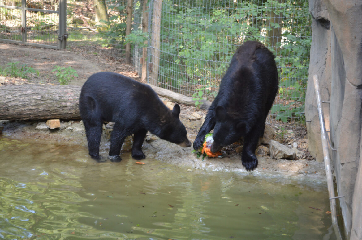 Eisbomben werden besonders von den Schwarzbären besonders gerne angenommen. Es handelt sich dabei um Obst und Gemüse, das in 10-Liter-Wassereimern eingefroren wird.