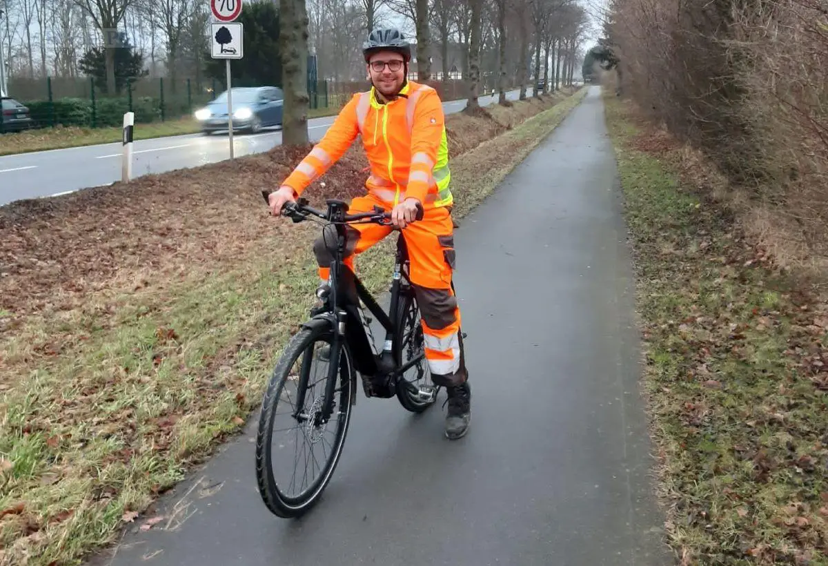 Christian Heuer arbeitet seit 2009 Jahren im Fachdienst Straßen des Landkreises Osnabrück. Als stellvertretender Streckenfahrer für den Straßenbereich erklärte er sich bereit, die Radwegkontrolle mit dem E-Bike zu übernehmen. „Wenn man direkt auf der Strecke unterwegs ist, erkennt man viel genauer, ob Handlungsbedarf besteht“, berichtet er über seine Tätigkeit.