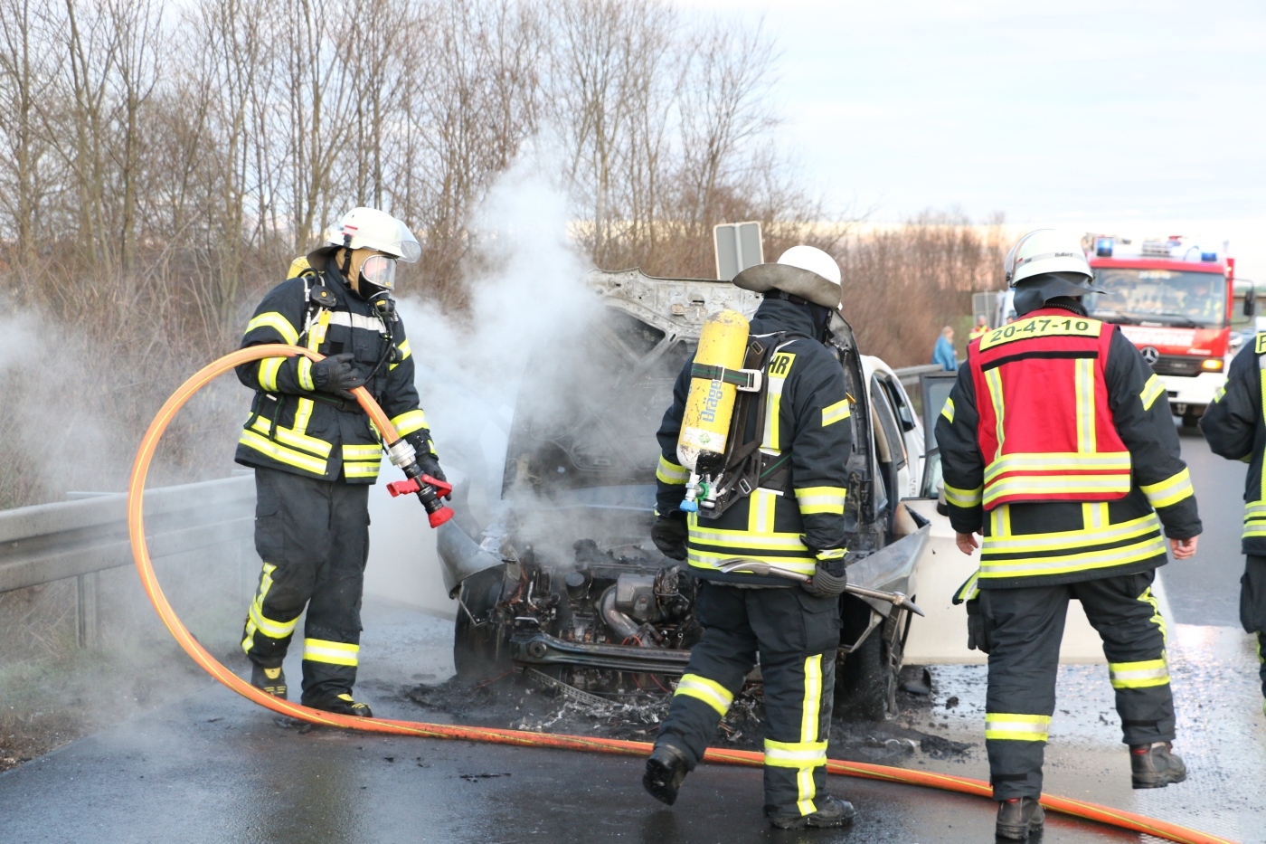 Sie war gegen 17 Uhr mit ihrem Seat Leon in Fahrtrichtung Osnabrück unterwegs gewesen, als das Feuer ausbrach. Die 27-Jährige Fahrerin bemerkte dann Rauch aus dem Motorraum und lenkte den Wagen auf den Pannenstreifen. Nur wenig später umhüllten ihn massive Flammen und dunkler Rauch stieg auf.