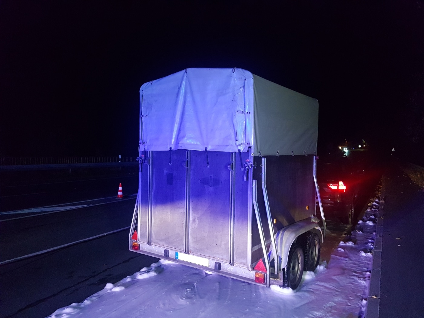 Um kurz vor 19:00 Uhr wurden Freiwillige Feuerwehr und Polizei zur Unglücksstelle gerufen. Vor Ort war ein PKW mit Anhänger zwischen Oesede und Bad Iburg gefahren. Der Fahrer bemerkte das Feuer während der Fahrt und konnte den Wagen noch rechtzeitig am Höhepunkt einer Kuppe auf dem Seitenstreifen anhalten.