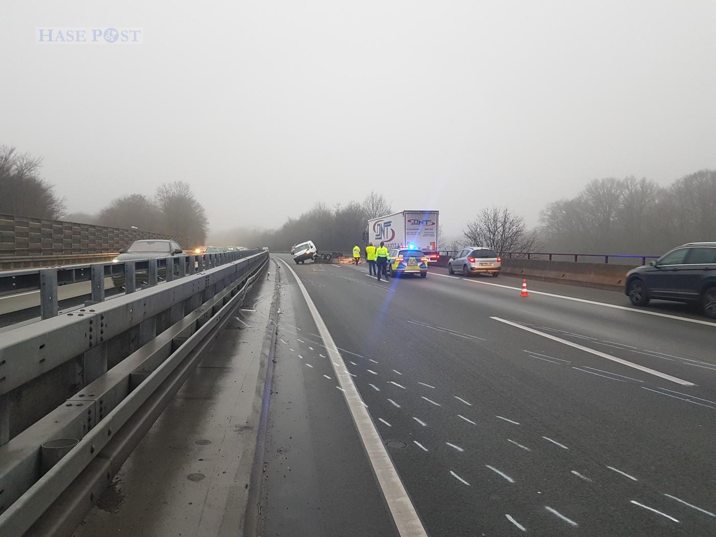 Am Freitagnachmittag (14.01.2022) geriet ein Fahrzeuggespann auf der Bundesautobahn 30 bei Osnabrück außer Kontrolle und blockierte in Folge beide Fahrstreifen.