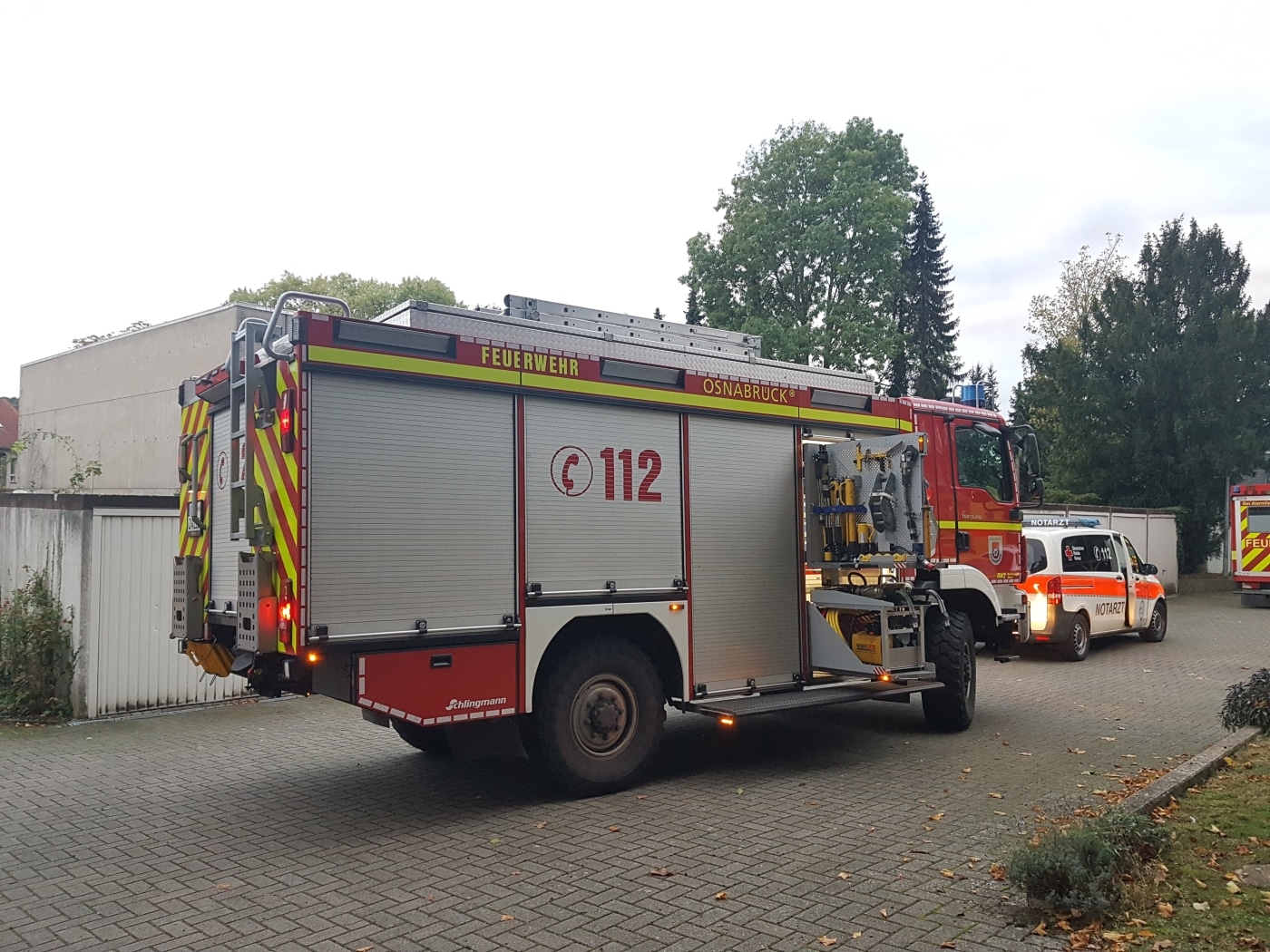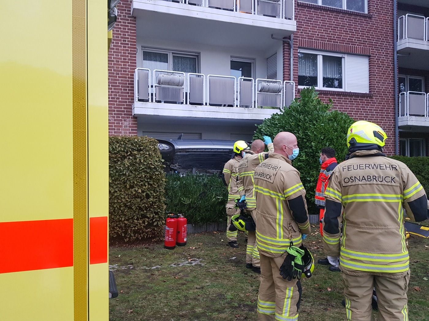 Die Berufsfeuerwehr Osnabrück sicherte das Fahrzeug gegen Umkippen, öffnete die oben liegende Fahrertür und konnte dann Fahrer und Beifahrerin sowie den Hund über Leiterteile aus dem Fahrzeug befreien. Alle drei blieben nach ersten Erkenntnissen unverletzt.