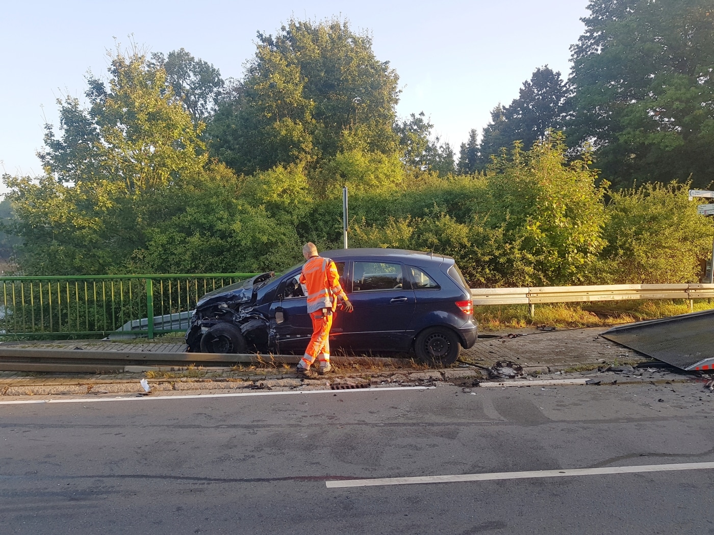 Auto kommt an Brückengeländer zum Stehen