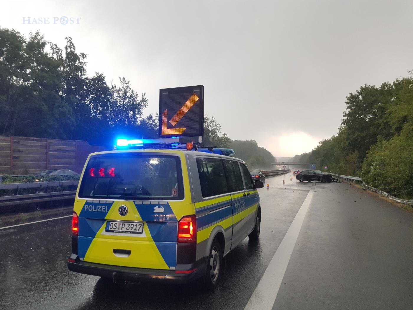 Gegen 19:20 Uhr war der Wagen in Fahrtrichtung Rheine unterwegs, als er zwischen den Anschlussstellen Hellern und Hasbergen-Gaste von seinem Fahrstreifen abkam. Die Mercedes-Limousine kollidierte nahezu frontal mit der rechten Leitplanke, rutschte zurück und kam quer zur Fahrbahn auf dem Pannenstreifen und der rechten Spur zum Stehen.