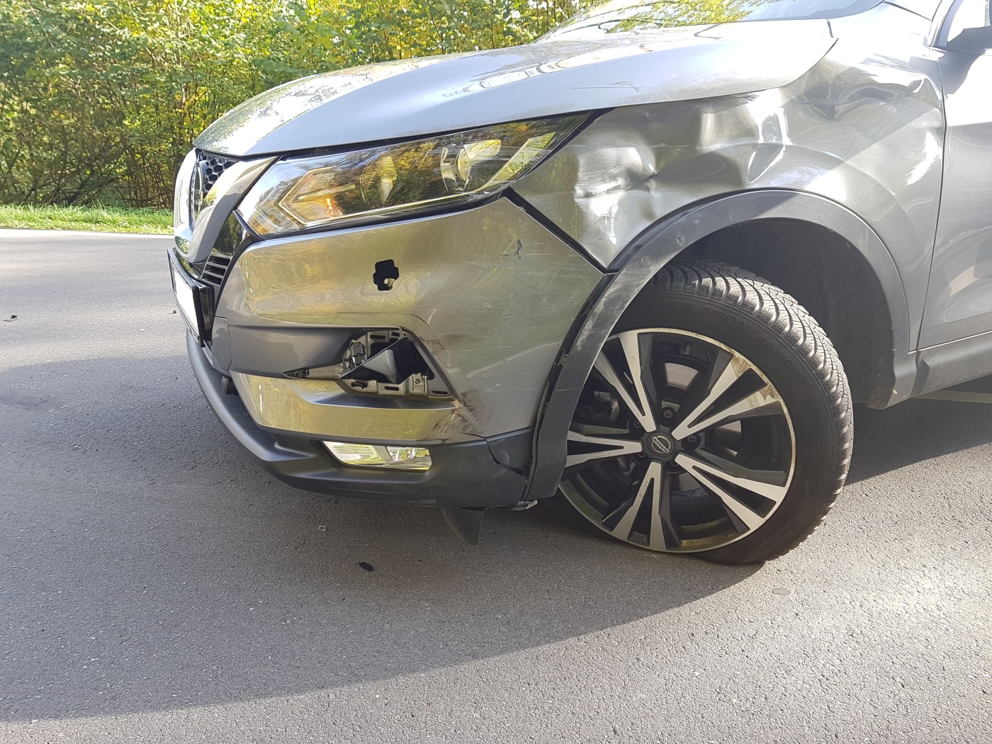 Der nachfolgende Citroen wechselte auf die Gegenfahrbahn, um am haltenden Nissan vorbeizufahren. Dieser scherte beim Abbiegen aber mit der Front aus und die Fahrzeuge touchierten sich. Der Citroen kam daraufhin in einem längeren Bogen nach rechts von der Fahrbahn ab, drehte sich am Straßenrand und rutschte entgegengesetzt zur Fahrtrichtung in den Graben und das Buschwerk des angrenzenden Waldes.