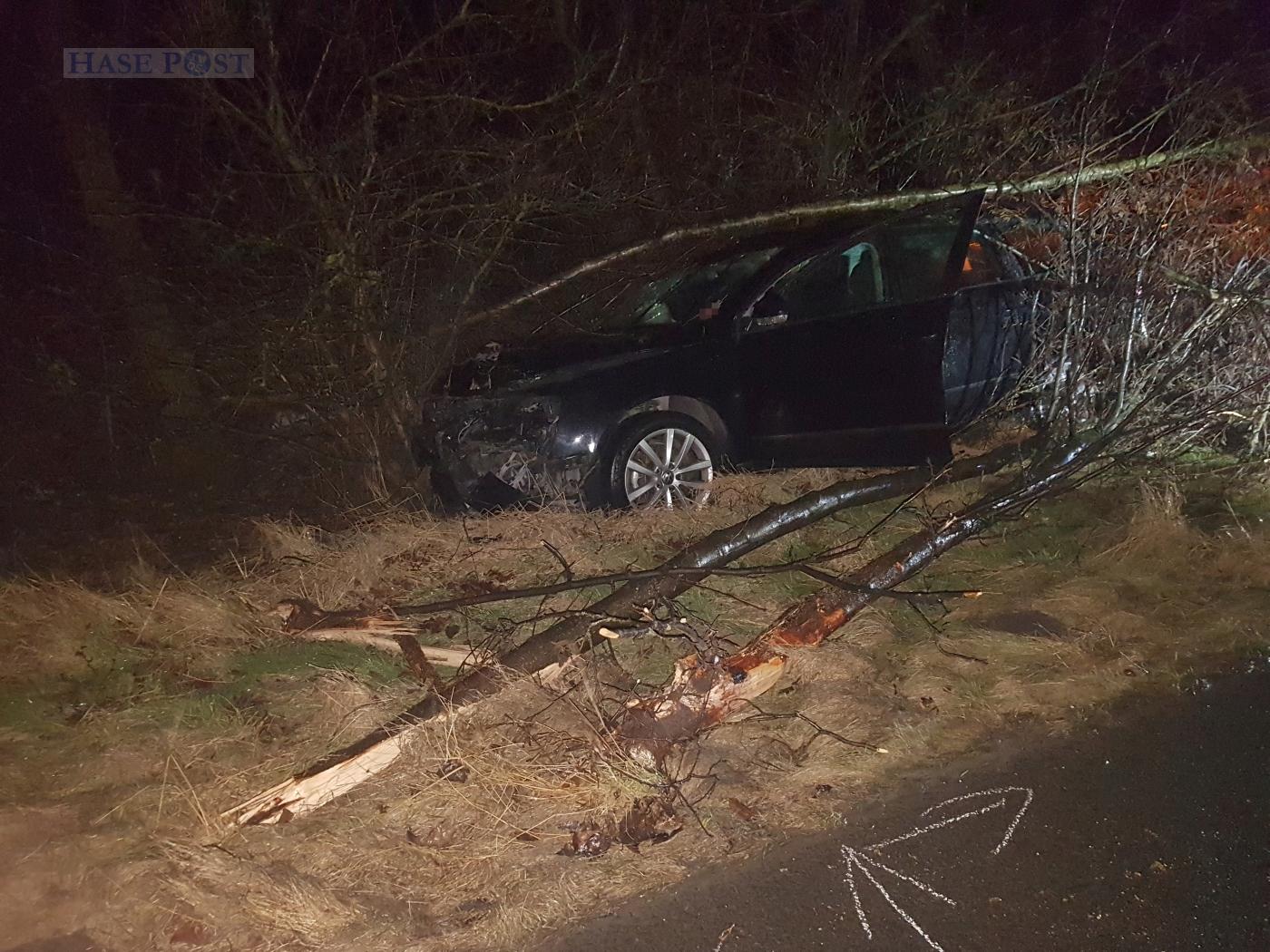 Nach derzeitigen Informationen fanden Ersthelfer gegen 01:40 Uhr das Auto neben der Autobahn. In Fahrtrichtung Bremen war der Wagen im verengten Baustellenbereich zwischen den Anschlussstellen Bramsche und Neuenkirchen-Vörden offenbar von der Fahrbahn auf den offenen Grünstreifen abgekommen. Der VW Kombi war ins Buschwerk gefahren und unter einigem Geäst zum Stehen gekommen.