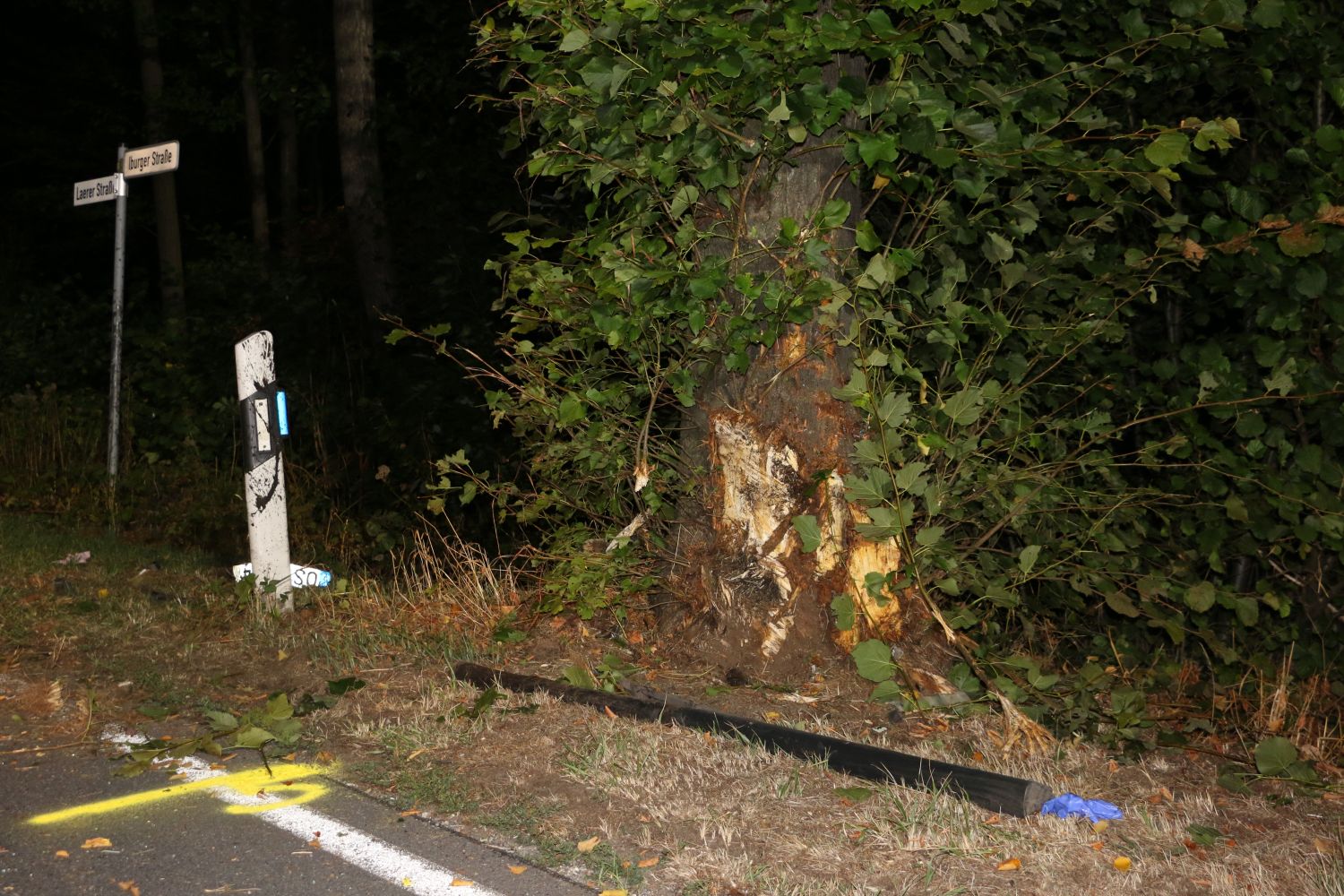 Am Abend des Freitags, den 31.08.2018, kam in Bad Laer bei Osnabrück ein PKW von der Straße ab und prallte gegen einen Baum.