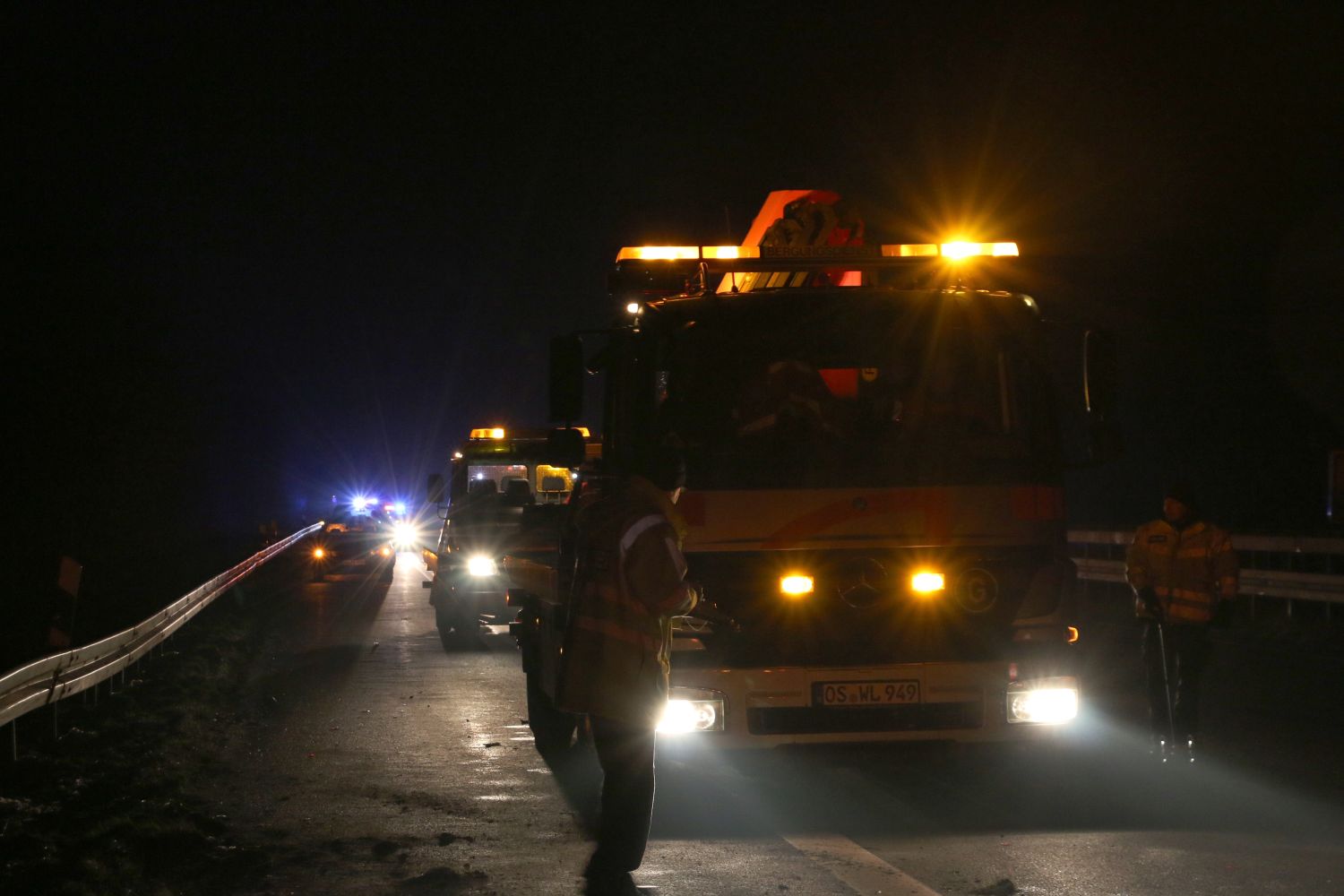 „Obwohl wir vom Rettungsdienst bereits auf der Anfahrt die Rückmeldung hatten, dass es keine schwerwiegenden Personenschäden gibt, rechneten wir bei dem Schadensbild zunächst mit Schlimmerem, als wir an der Einsatzstelle eintrafen“, so ein Sprecher der Autobahnpolizei Osnabrück. Das Trümmerfeld beider Unfälle erstreckte sich über rund 150 Meter auf Hauptfahrspur und Pannenstreifen.
