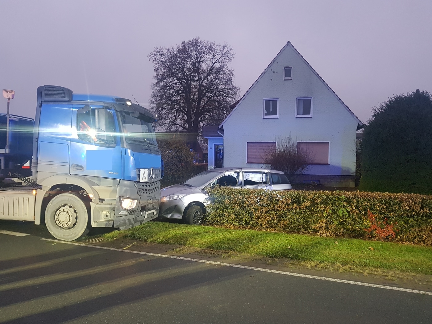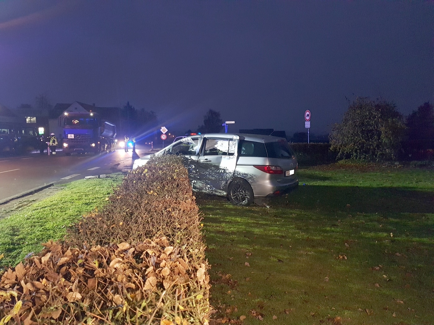 Am Dienstagabend, den 23.11.2021, kam es in Melle zu einem schweren Verkehrsunfall. Ein Auto mit drei Insassen wurde von einem LKW erfasst und über eine Landstraße geschoben.