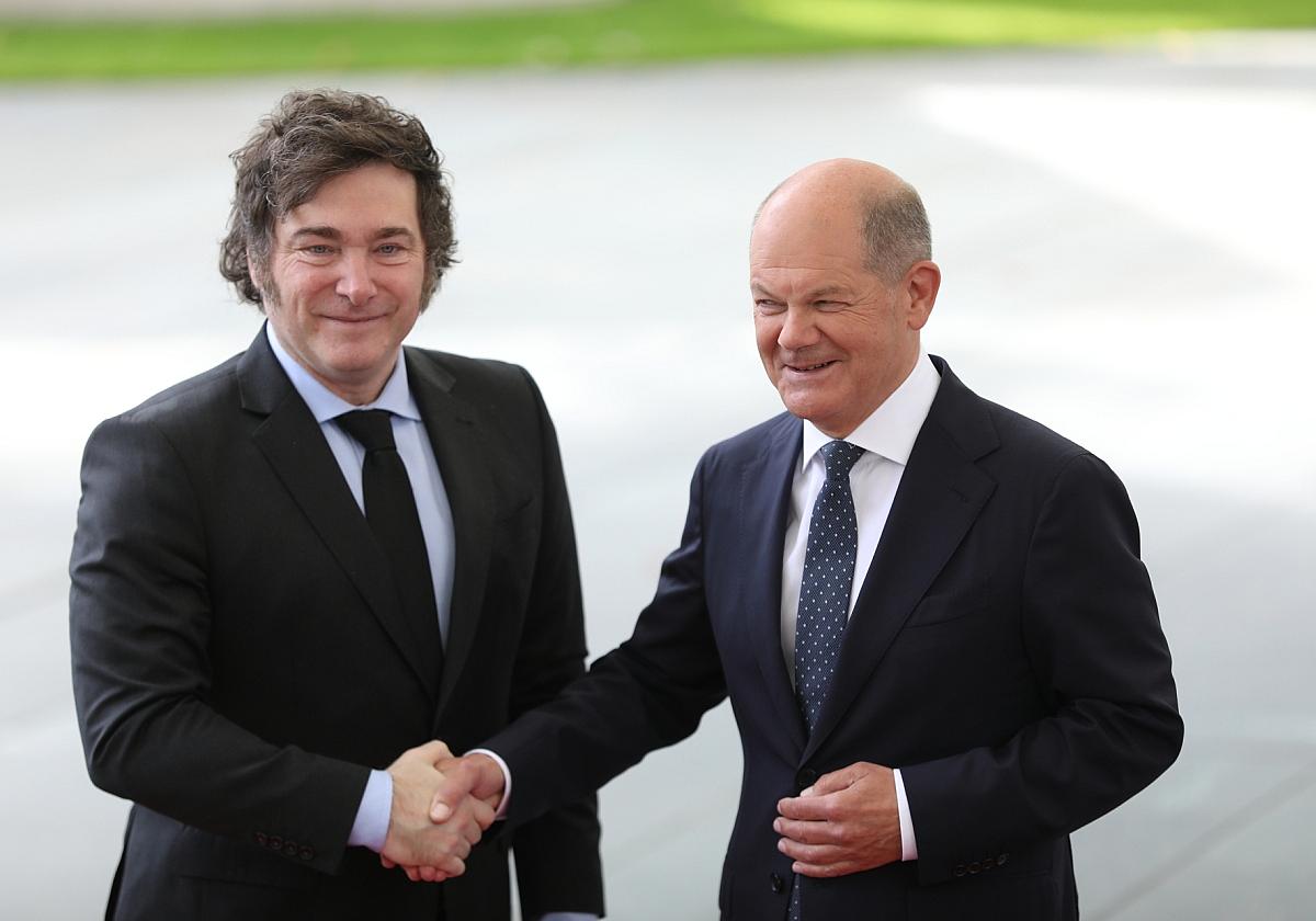 Javier Milei, Argentiniens Präsident, wurde am Sonntag von Bundeskanzler Olaf Scholz im Kanzleramt empfangen. Dieser erste Besuch in Berlin seit Mileis Amtsantritt vor einem halben Jahr, wurde von Protesten begleitet. Mehrere Dutzend Demonstranten versammelten sich vor dem Kanzleramt, mit Transparenten, die den Aufforderungen wie „Weg mit Milei“ enthielten.