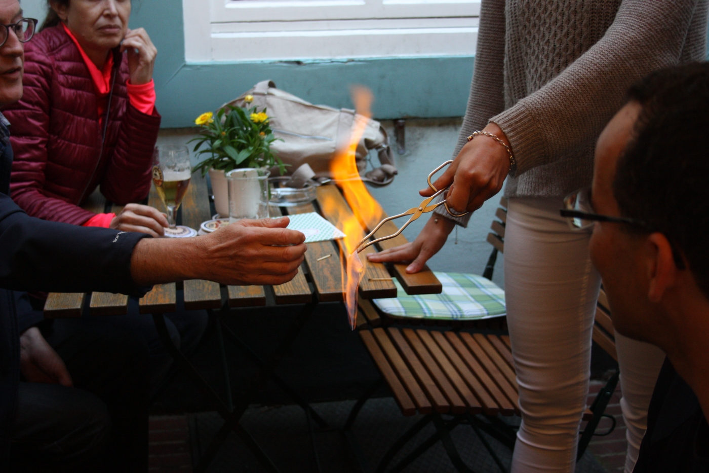 Die Osnabrücker in den teilnehmenden Kneipen und Biergärten waren jedenfalls sehr angetan von den Vorführungen und nahmen das ungewöhnliche Unterhaltungsprogramm erfreut an. „Da lernt man doch selbst auch eine ganze Menge oder frischt das früher mühsam erlernte aus der Schule nochmal auf.“, so Manfred Kolle, den wir in der „Grünen Gans“ trafen.