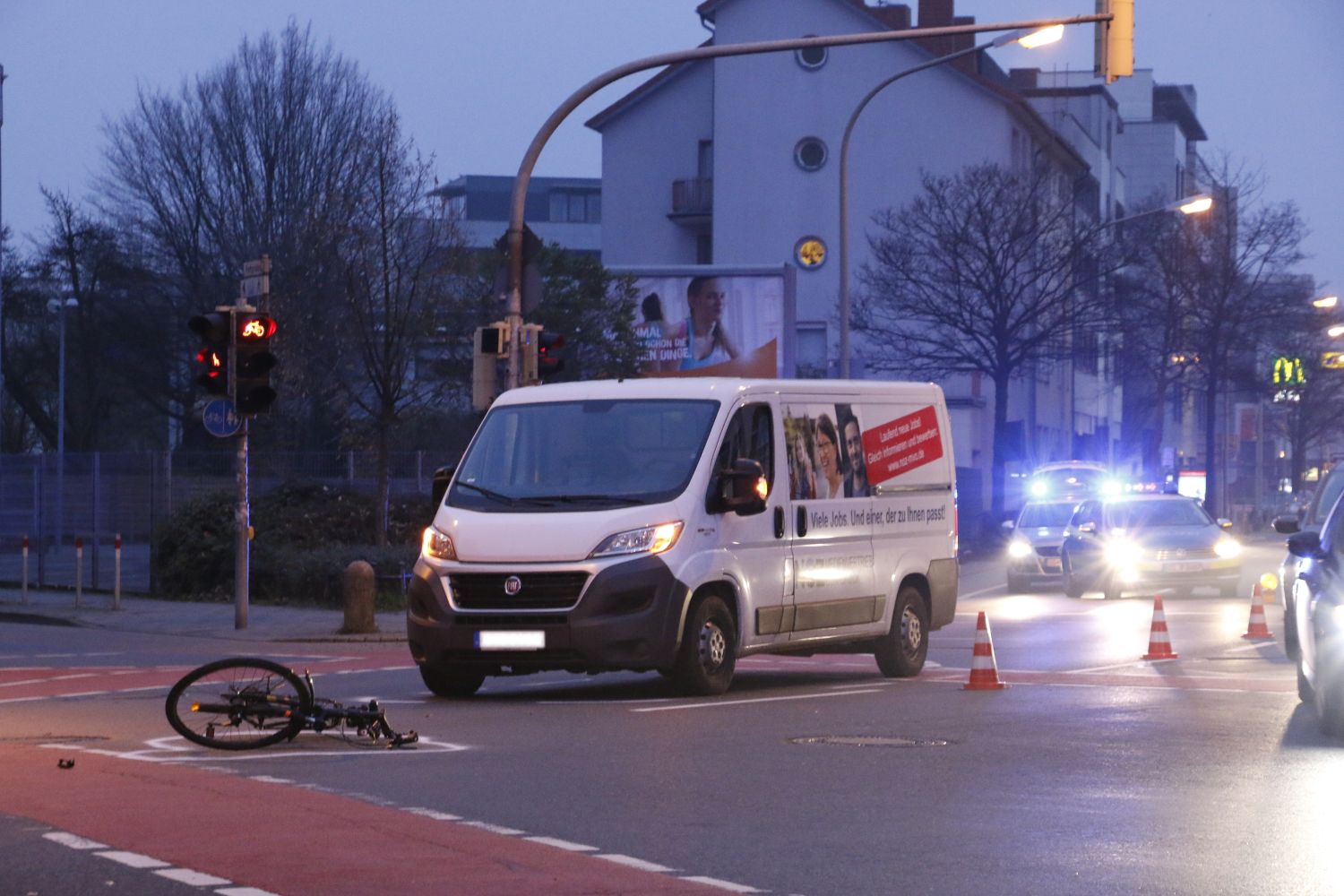 Am frühen Morgen kam es zu einem Unfall, bei dem ein Radfahrer auf einer Kreuzung von einem Van erfasst und verletzt wurde.