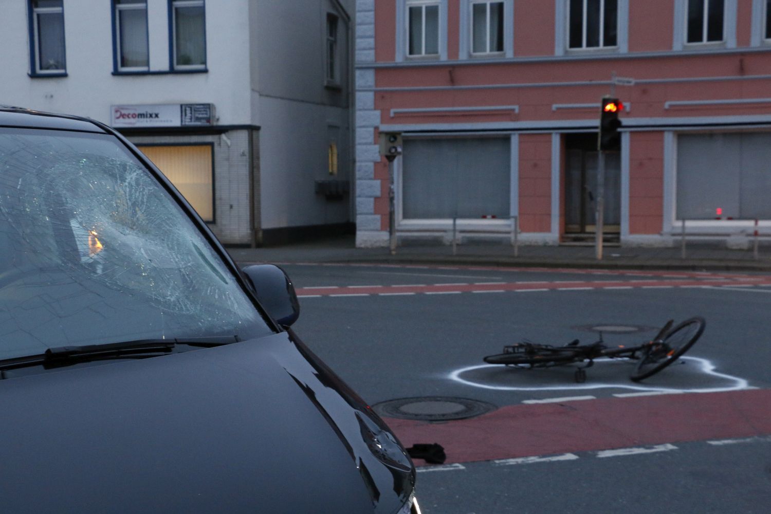 Gegen 7:15h hielt der Kleinbus zunächst auf dem Konrad-Adenauer-Ring an der Kreuzung zum Pottgraben/An der Petersburg auf der rechten Fahrspur. Ein Transporter fuhr auf der Spur links von ihm auf den Kreuzungsbereich zu. Als beide Fahrzeuge anfuhren, befuhr ein Radfahrer den Kreuzungsbereich von links auf dem Radweg. Der Fahrer des Van konnte diesen nicht sehen, da der Transporter die Sicht in diesem Moment verdeckte, und es kam zum Zusammenstoß.
