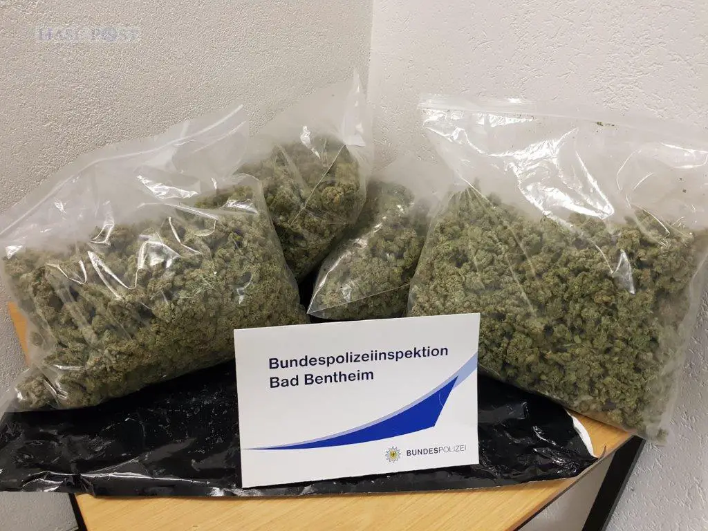 Bei Durchsuchung des Autos entdeckten die Beamten einen aufgerissenen Karton und einen starken Marihuanageruch. Während der Flucht vor der Bundespolizei hatte der Beifahrer mehrere Plastikbeutel mit Drogen aus dem Karton genommen und aus dem Fenster geworfen. Insgesamt fanden die Beamten auf der Straße rund 4 Kilo Marihuana. Die beiden türkischen Staatsangehörigen wurden daraufhin wegen der illegalen Einfuhr einer nicht geringen Menge Betäubungsmittel vorläufig festgenommen. Das beschlagnahmte Marihuana hätte im Straßenverkauf einen Wert von etwa 40.000 Euro.