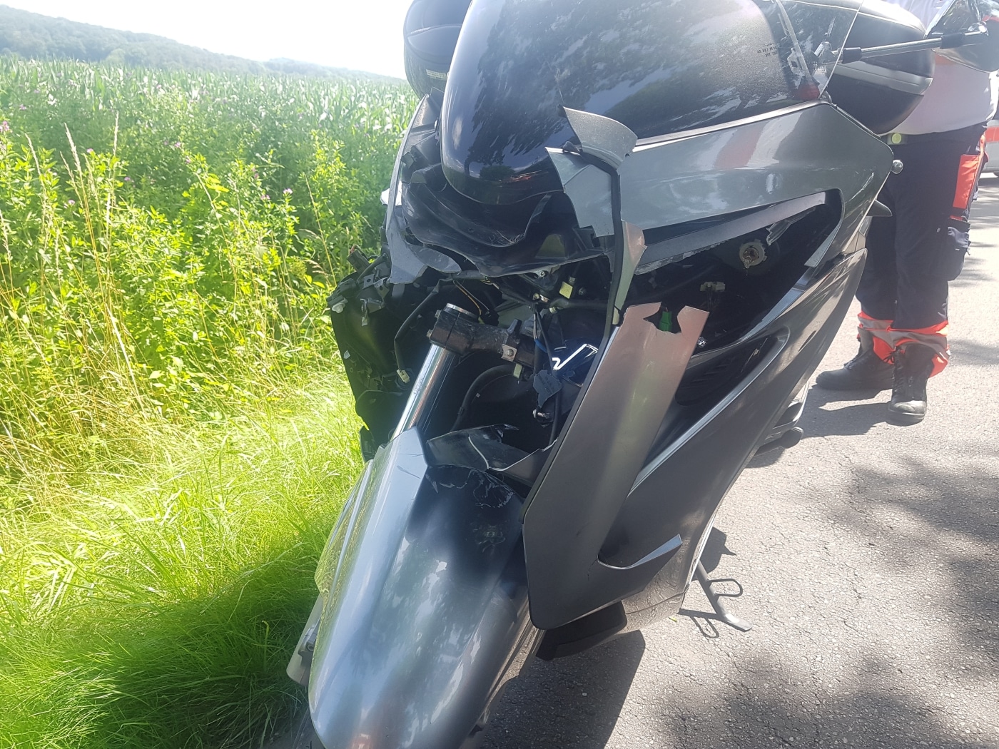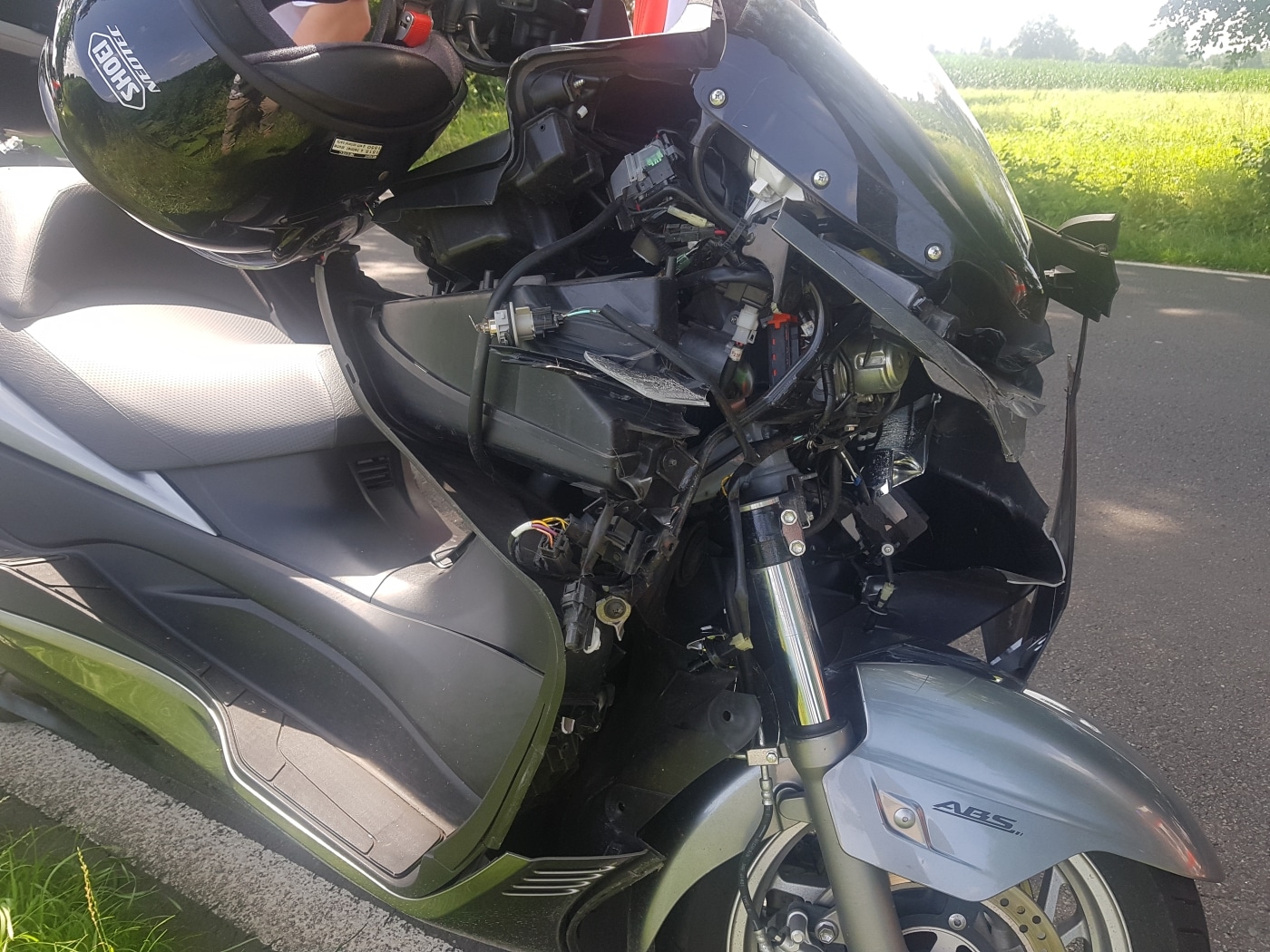 Auf der Gegenfahrspur wurde das Reh dann aber frontal von dem Motorroller erfasst und durch den Aufprall getötet. Am Roller wurde die komplette Front zerstört, Anbau- und Verkleidungsteile verteilten sich weit über beide Fahrspuren. Die 63-jährige Rollerfahrerin wurde nach ersten Informationen nur leicht verletzt.