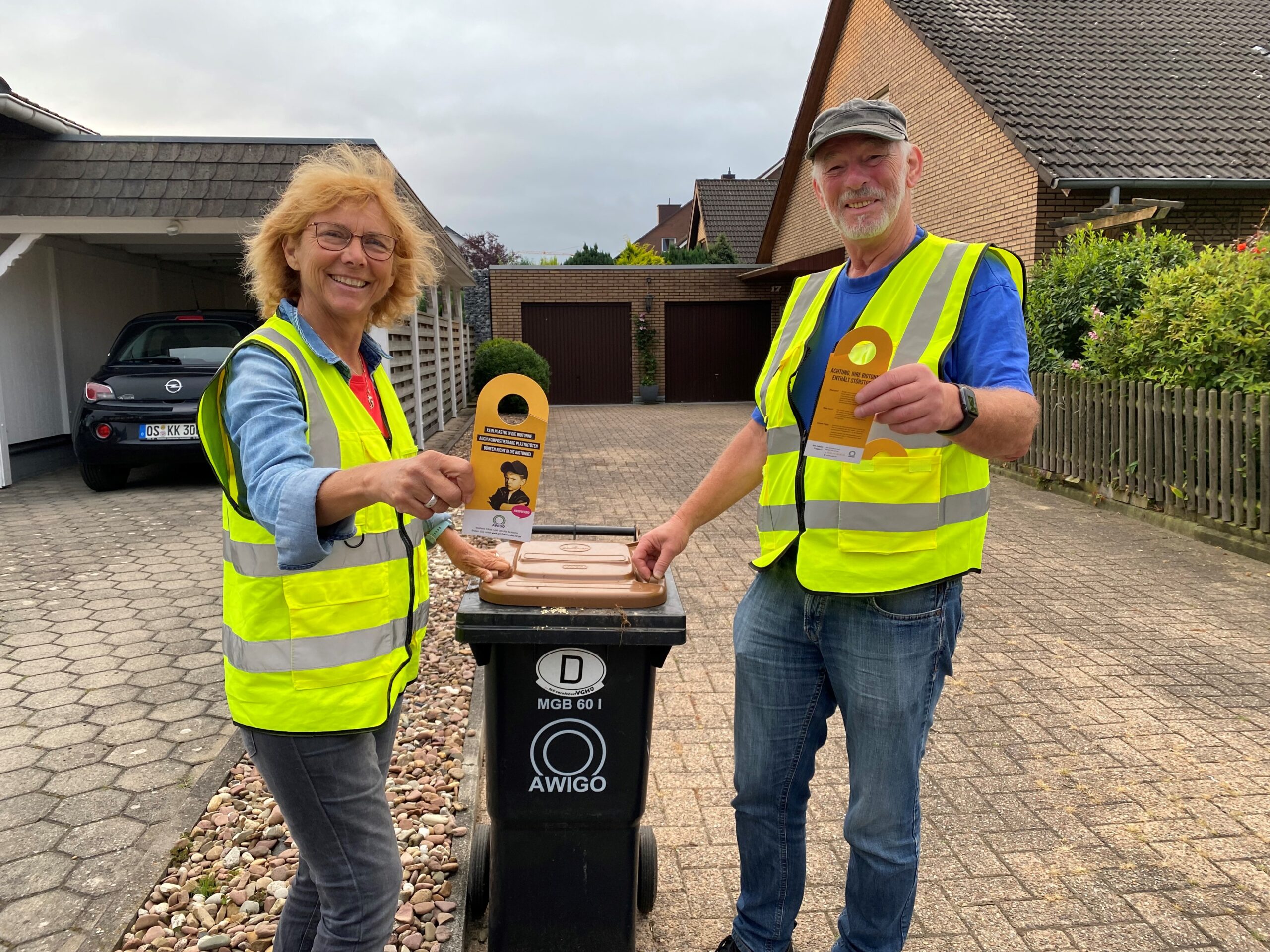 Seit Sommer sind regelmäßig AWIGO-Teams zur Sichtkontrolle der Biotonnen im Osnabrücker Land unterwegs. Eine erste Zwischenbilanz zeigt, dass die große Mehrheit ihren Bioabfall schon sehr gut trennt und genau darauf achtet, was in die Biotonne darf und was nicht. Jedoch landen nach wie vor zu viele Plastiktüten und andere nicht kompostierbare Materialien in den braunen Mülltonnen.