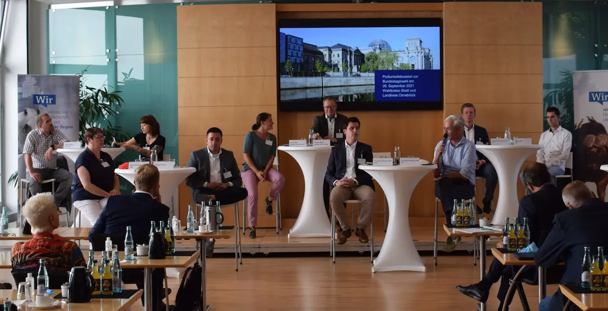 Spätestens seit eine rot-rot-grünen Bundesregierung als Möglichkeit im Raum steht, wird im Wahlkampf hitzig über Wirtschafts- und Steuerpolitik gestritten. Die IHK lud daher gemeinsam mit dem „Verein für Wirtschaftsförderung in Osnabrück“ (VWO) die Bundestagskandidierenden aus den Wahlkreisen Stadt Osnabrück und Osnabrück-Land ein, um über Wirtschaft, Steuern und Klimaschutz zu diskutieren.