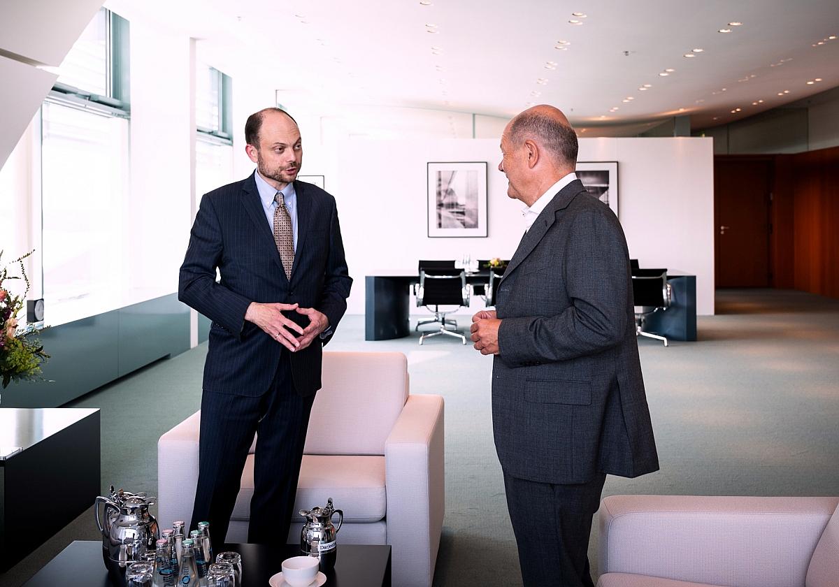 Bundeskanzler Olaf Scholz (SPD) hat den freigelassenen Kremlkritiker Wladimir Kara-Mursa empfangen und seine Arbeit für eine demokratische Zukunft Russlands gewürdigt. Kara-Mursa, der zwei Giftanschläge überlebte und als Befürworter für Demokratie und Pressefreiheit bekannt ist, wurde im August 2024 nach einer langen Haftzeit freigelassen.
