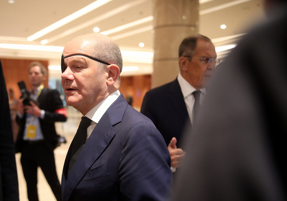 Scholz war beim Gipfel bereits am Samstag von Journalisten zu einem möglichen Kontakt befragt worden und hatte dies verneint. Im Verhandlungsraum habe Lawrow „die üblichen Erzählungen“ von sich gegeben, sagte der Kanzler weiter und ergänzte: „Ich glaube, niemand im Raum hat sie geglaubt.“ Am Sonntagnachmittag begegneten sich Scholz und Lawrow dann zufällig auf dem Flur, auf einem Bild ist zu sehen, wie der Kanzler dem russischen Außenminister die kalte Schulter zeigt, der kurz darauf grußlos unmittelbar an ihm vorbeigeht. Dabei waren nicht alle G20-Vertreter so auf Abstand bedacht: Auf weiteren Bildern vom Gipfeltreffen ist zu sehen, wie Mexikos Wirtschaftsministerin Raquel Buenrostro mit Lawrow scherzt und für ein gemeinsames Erinnerungsfoto posiert. Lawrow hatte beim Treffen der Staats- und Regierungschefs der wichtigsten Industrie- und Schwellenländer den russischen Präsidenten Wladimir Putin vertreten. Dieser hatte sich wohl auch aufgrund eines Haftbefehls des Internationalen Strafgerichtshofs gegen einen Besuch in Indien entschieden.