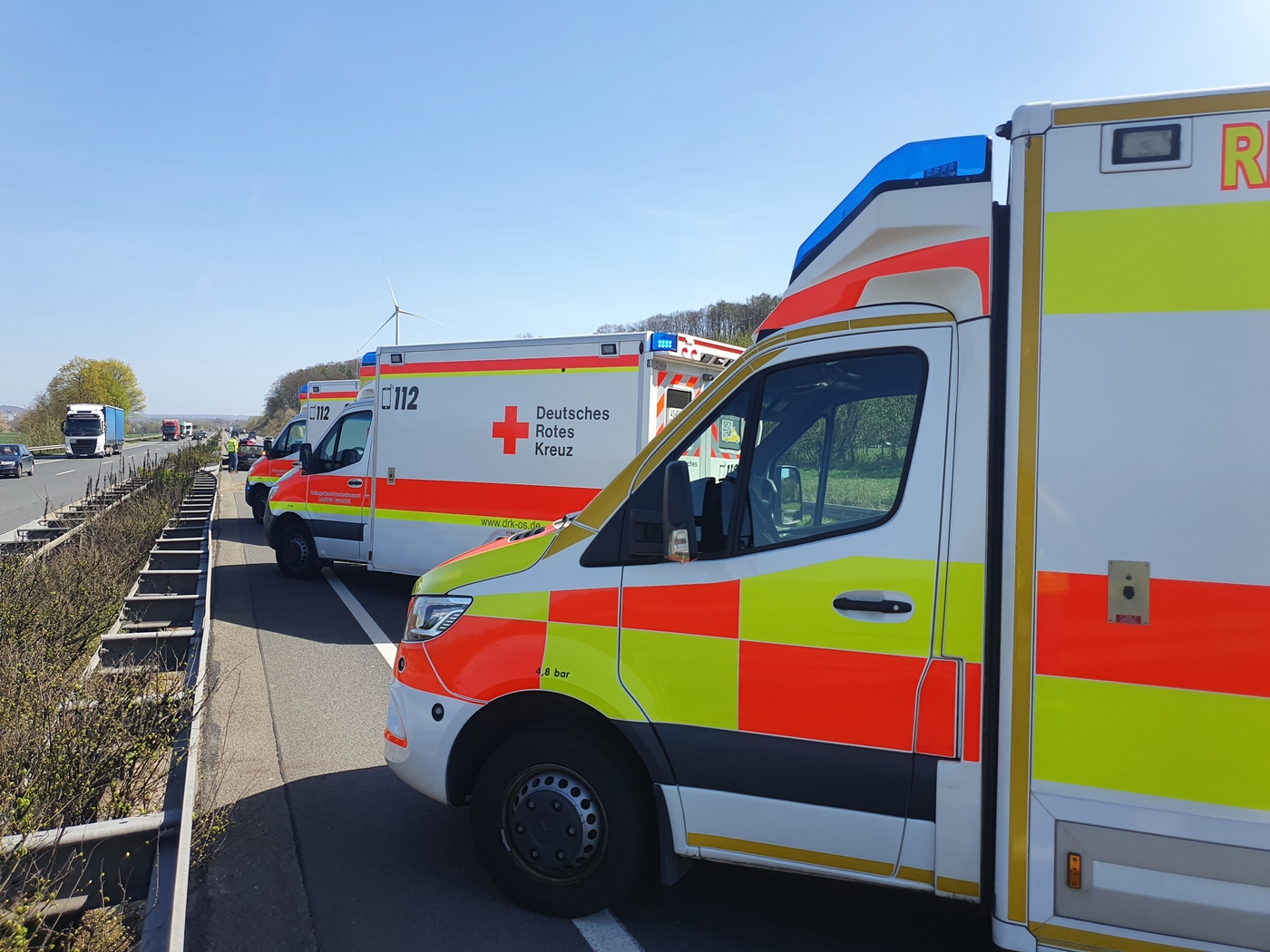 Die massiven Schäden an den Fahrzeugen und der Stahlschutzplanke zeugten von der Wucht der Kollision. Drei Rettungswagen rückten aus, um die Verletzten zu versorgen und in Krankenhäuser zu bringen.