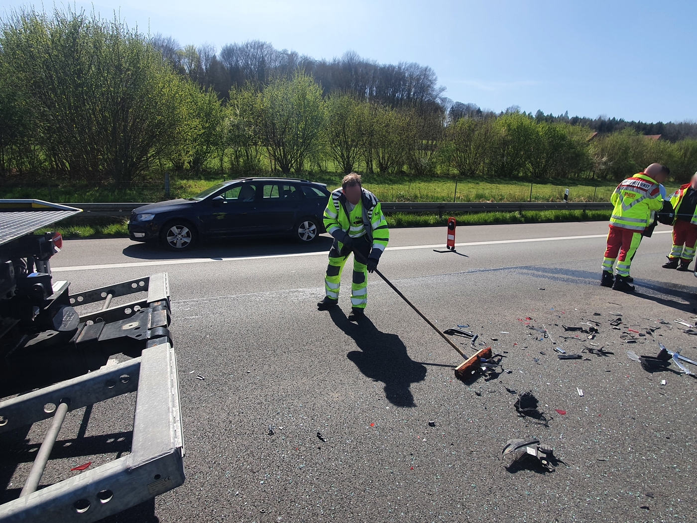 Während aller Arbeiten konnte der Verkehr nur einspurig an der Unfallstelle vorbeigeführt werden. Es kam daher zu mehreren Minuten Rückstau in praller Sonne.