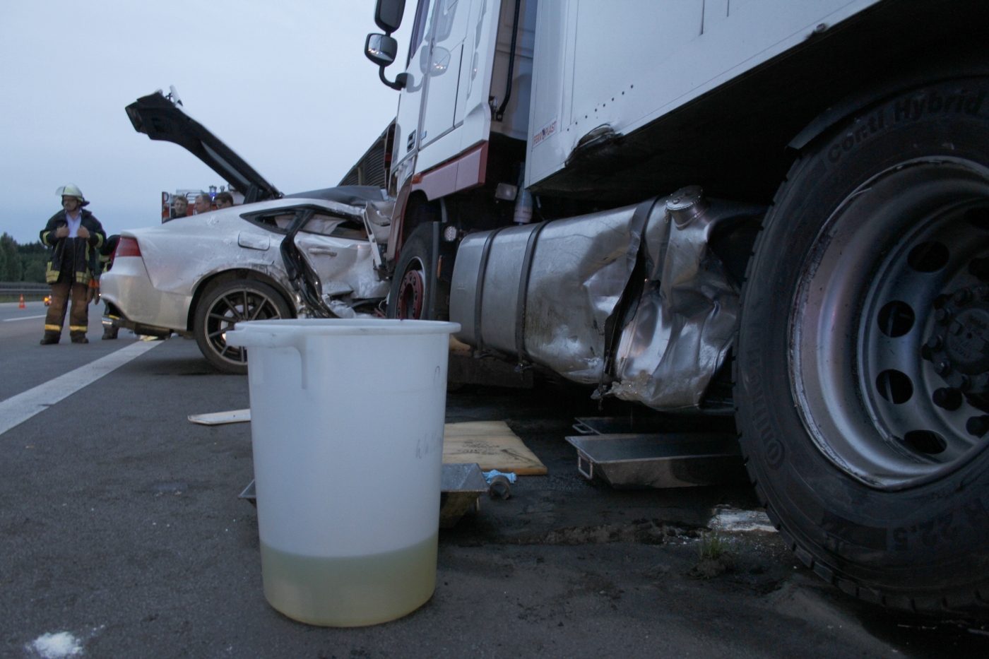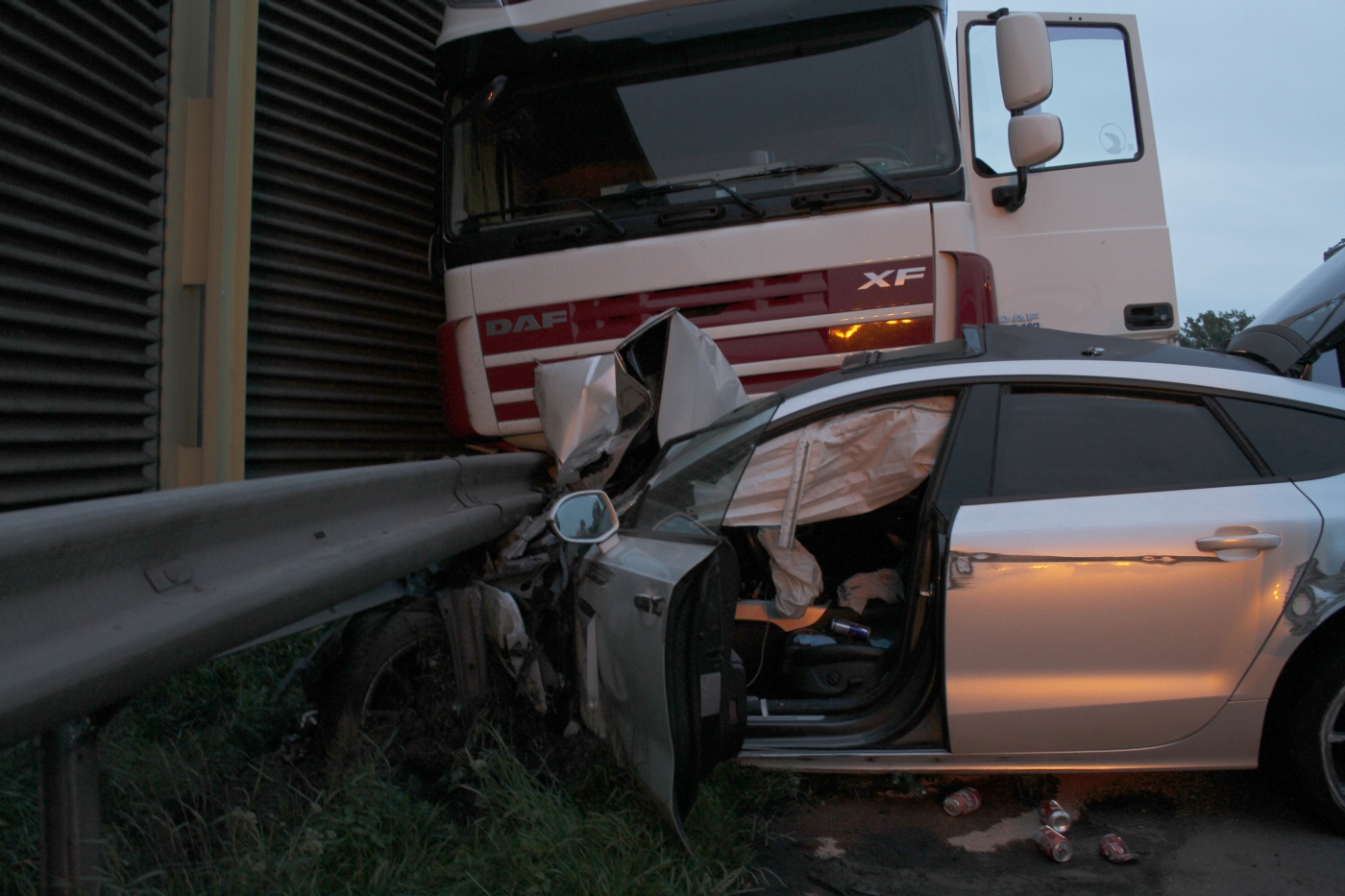 Die Fahrerin eines Mini, dessen Fahrzeug nach einem Aufprall in der Leitplanke stehen blieb, wurde schwerst, wahrscheinlich sogar lebensgefährlich, verletzt. Ihr Beifahrer erlitt leichte Verletzungen. Eine Limousine der Marke Audi wurde offenbar vom LKW erfasst und unter mehrere hundert Meter hinter dem Mini in die Leitplanke gedrückt. In diesem Fahrzeug wurden zwei Personen schwer und zwei weitere leicht verletzt. Der LKW-Fahrer kam unverletzt davon.