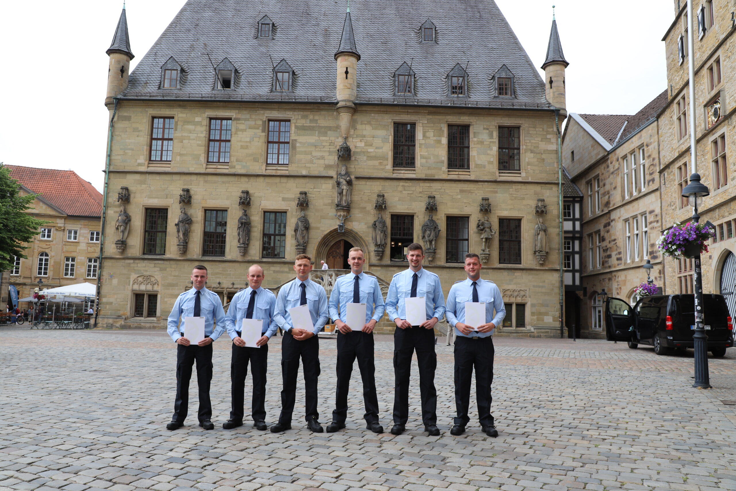 Die Stadt Osnabrück freut sich über sechs neue Brandmeister-Anwärter. Sie haben jetzt im Rathaus aus den Händen von Heike Pape, als Sozialvorstand unter anderem für die Feuerwehr zuständig, und Heiko Schnitker, stellvertretender Leiter der Feuerwehr Osnabrück, ihre Ernennungsurkunden überreicht bekommen. Die Anwärter sind nun Beamte auf Widerruf und starten in ihre zweijährige Ausbildung.