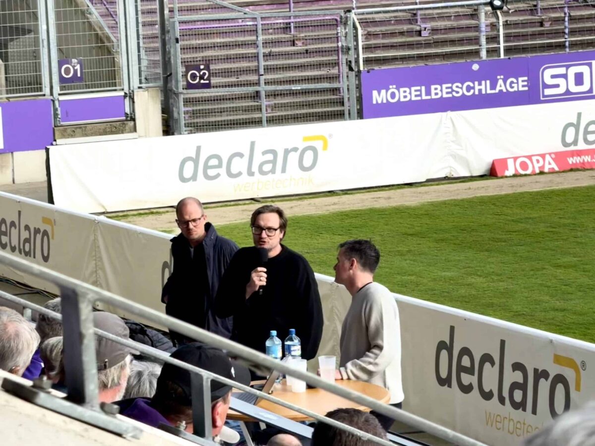Im Anschluss an die Präsentation des Bauvorhabens übernimmt zunächst Dr. Michael Welling, Geschäftsführer des VfL Osnabrück, das Wort. „Wir wissen, welche Fragen unsere Fans besonders umtreiben. Doch es gibt auf viele dieser Fragen einfach noch keine Antwort“, sagt er. Zum jetzigen Standpunkt gibt es noch keine Antworten auf den Baubeginn, den Ablauf des Umbaus oder das Ticketing.