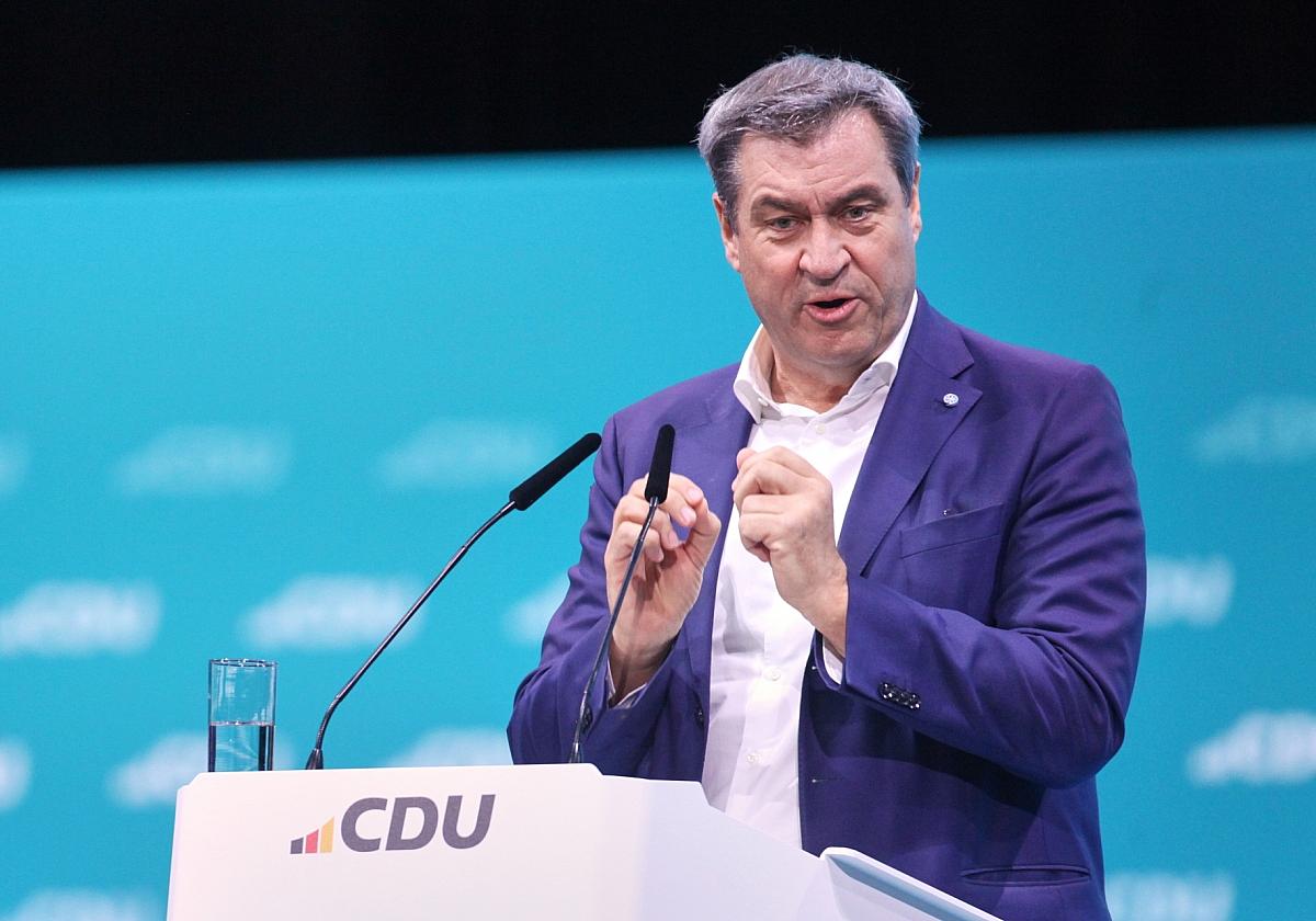 Markus Söder (CSU) unterstrich die unentbehrliche Verbindung zwischen der CSU und der CDU. „Ohne einander geht es nicht: Wir sind untrennbar miteinander verbunden“, sagte der CSU-Chef in seinem Grußwort. Er betonte sein gutes Verhältnis zu Friedrich Merz (CDU) und sagte: „Wenn wir beide ehrlich sind: Wir hatten nicht erwartet, dass es so reibungslos läuft.“ Söder verteidigte das Wahlergebnis von Merz, das mit 90 Prozent Zustimmung eher dünn ausgefallen war: „In keiner Partei, die sich derzeit in der Ampel um was bemühen, hat irgendein Parteivorsitzender so viel Rückhalt, wie Friedrich Merz gestern bekommen hat.“