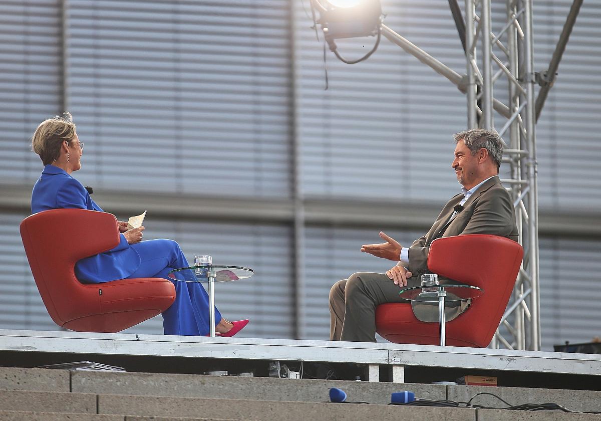 Außenpolitisch gibt Markus Söder der Regierung und Bundeskanzler Friedrich Merz eine „Eins mit Stern“ für das, was Merz geleistet habe, gerade im Vergleich zu seinem Vorgänger. Angesprochen auf Merz` gestrige Aussage auf dem CDU-Parteitag in Niedersachsen, dass er nicht zufrieden sei, was die Regierung bisher geschafft habe, vergleicht Söder die bisherige Arbeit der ersten Monate mit einem Fußballspiel: „Wir haben sehr gut losgelegt und haben am Schluss mit der Stromsteuer beginnend und mit der Richterwahl ein paar blöde Tore kassiert, die die Stimmung natürlich verunsichert haben.“