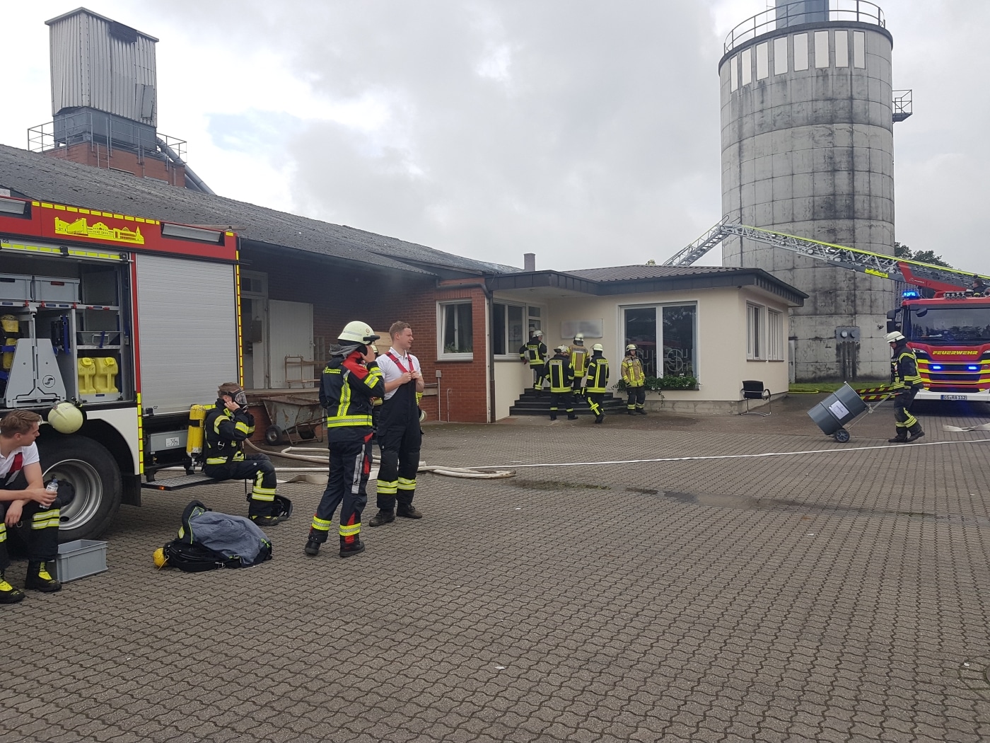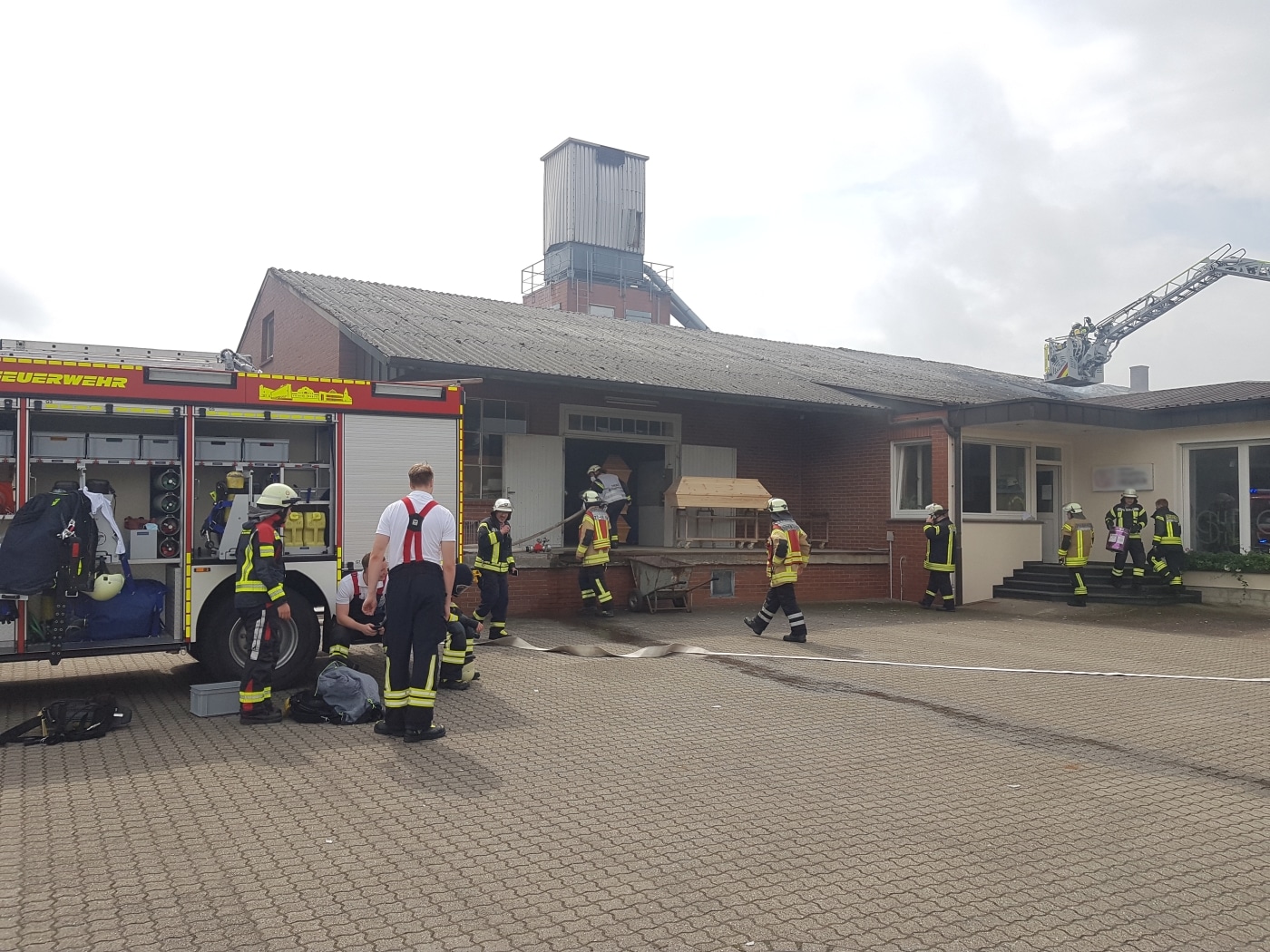 Um 11:32 Uhr wurde die Freiwillige Feuerwehr Glandorf zu einem Gebäudebrand in einem holzverarbeitenden Betrieb alarmiert. Auf der Anfahrt erhielten die Einsatzkräfte weitere Rückmeldungen, dass Flammen bereits aus dem Dach schlagen. Daher wurden direkt weitere Kräfte nachalarmiert.