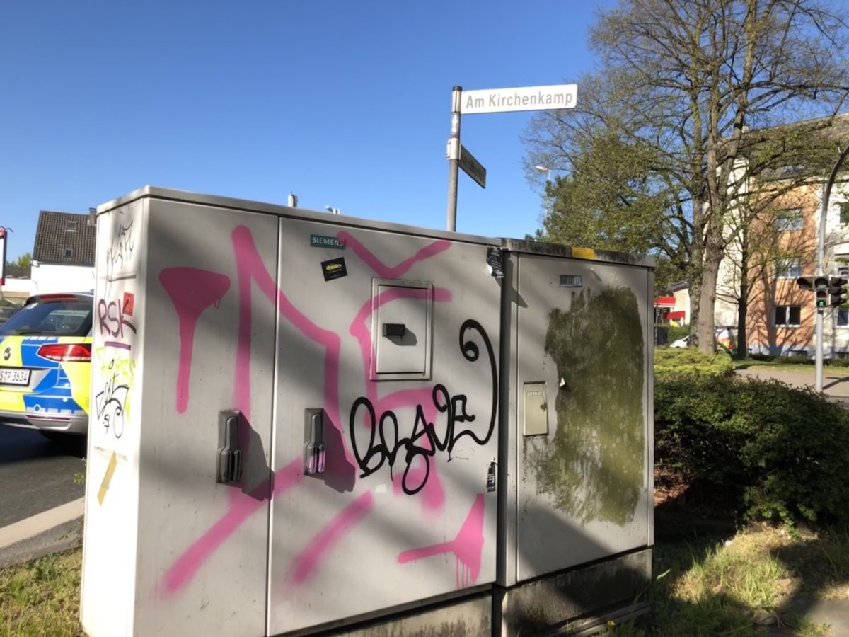 Dank eines aufmerksamen Zeugen konnte die Polizei in der Nacht zu Sonntag einen Sprayer in der Martinistraße kurz nach seiner Tat packen. Ein Anwohner hatte gegen 00:40 Uhr aus dem Fenster beobachtet, wie ein Unbekannter einen an der Ecke Martinistraße/Am Kirchenkamp aufgestellten Stromkasten mit Farbe beschmierte. Durch die gute Beschreibung des Zeugen konnte die alarmierte Polizei den 20-jährigen Osnabrücker bereits kurze Zeit später auf der Martinistraße entdecken. In einem Beutel trug er sein Tatequipment, zwei Spraydosen, noch bei sich. Wie sich weiterhin herausstellte, hatte er zumindest noch einen zweiten, in der Schreberstraße aufgestellten, Stromkasten mit einem Graffiti versehen. Auf den jungen Mann kommt nun eine Strafanzeige wegen Sachbeschädigung und vermutlich auch eine zivilrechtliche Forderung für die Beseitigung der Schmierereien zu.
