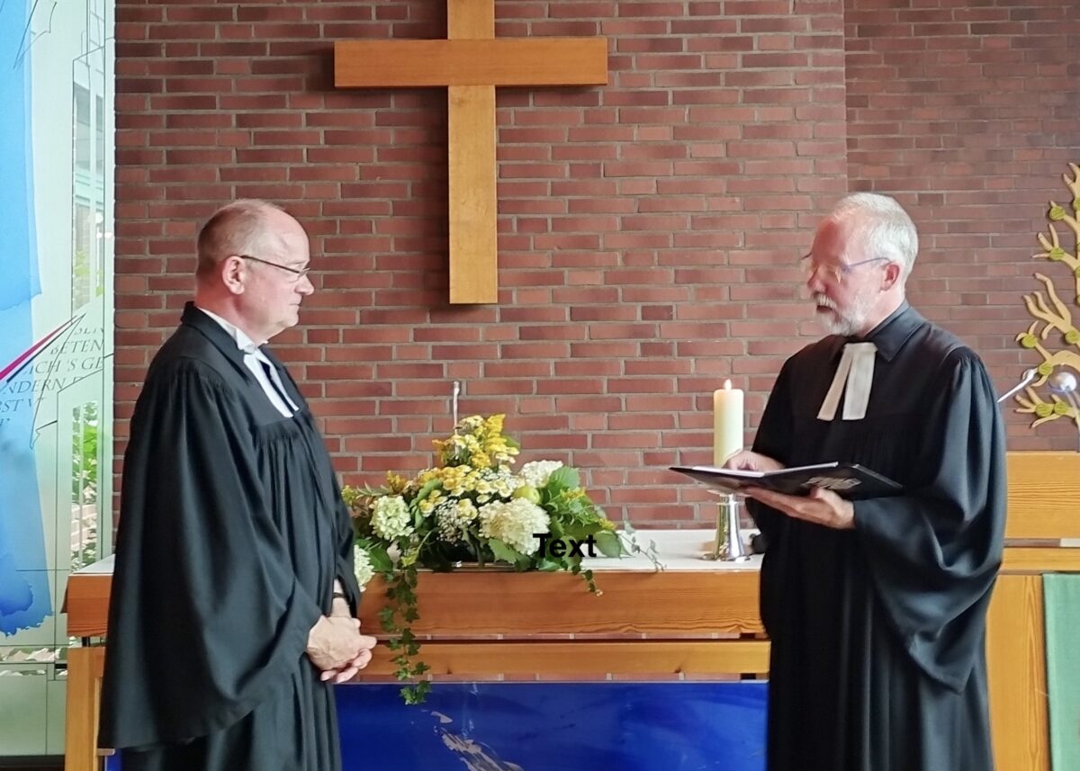 Nach insgesamt 37 Jahren Dienst in der evangelisch-lutherischen Landeskirche Hannovers hat Superintendent Dr. Joachim Jeska, leitender Geistlicher des Kirchenkreises Osnabrück, Pastor Christoph Schnare jetzt in den Ruhestand verabschiedet. In der Andreaskirche in Wallenhorst entpflichtete Jeska den 65-Jährigen, der zum 1. Oktober in den Ruhestand geht und seit Februar 2023 als Springerpastor in den Kirchenkreisen Osnabrück und Bramsche im Einsatz war.
