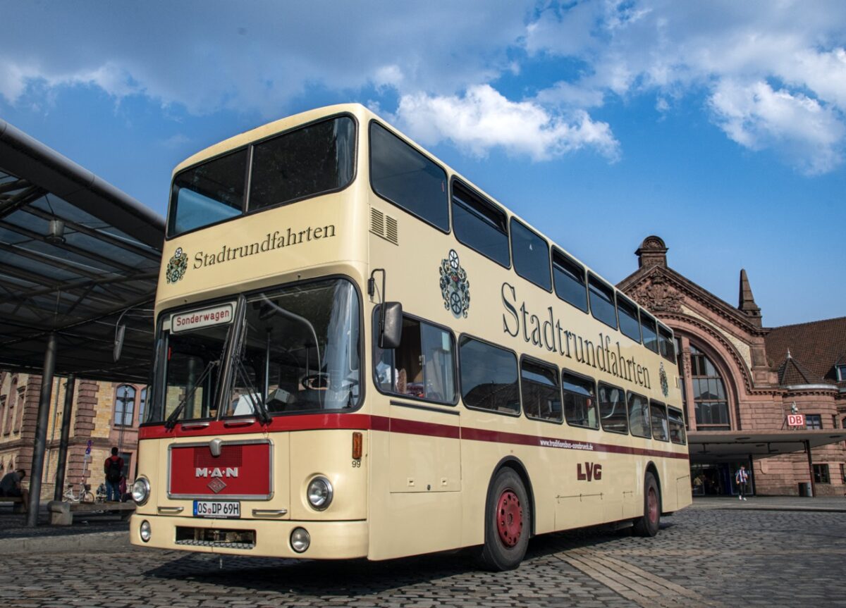 Im historischen Doppeldeckerbus kann man Osnabrück auf eine besondere Art und Weise erleben. Die Stadtwerke Osnabrück haben die Bustouren bis 2022 betrieben – und sie sind auch weiterhin Kooperationspartner, der dieses Angebot möglich macht. Gemeinsam mit osnatours.de und dem Traditionsbus Osnabrück e.V. bietet die Marketing Osnabrück GmbH nun von April bis November 2024 verschiedene Touren durch Osnabrück an.