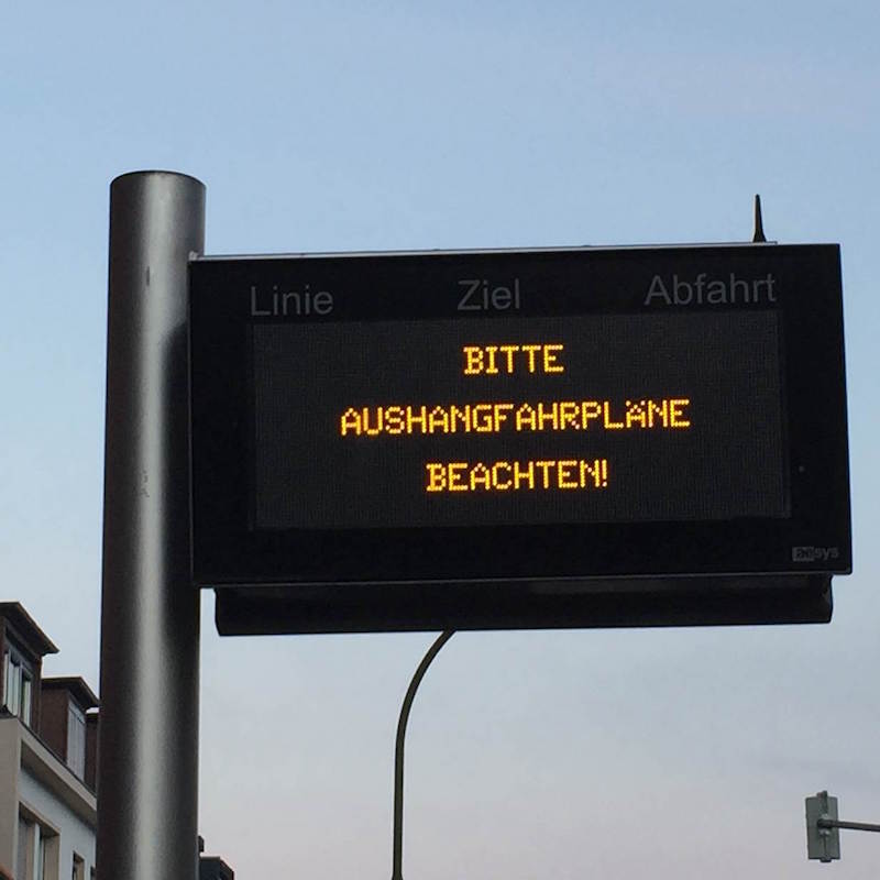 Vor ein paar Tagen konnten Fahrgäste und Stadtwerke die seltsamen Zeitangaben auf den digitalen Anzeigetafeln noch mit Humor nehmen, inzwischen häufen sich allerdings Meldungen über Totalausfälle und der Ärger bei den Fahrgästen.